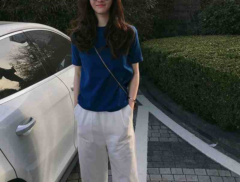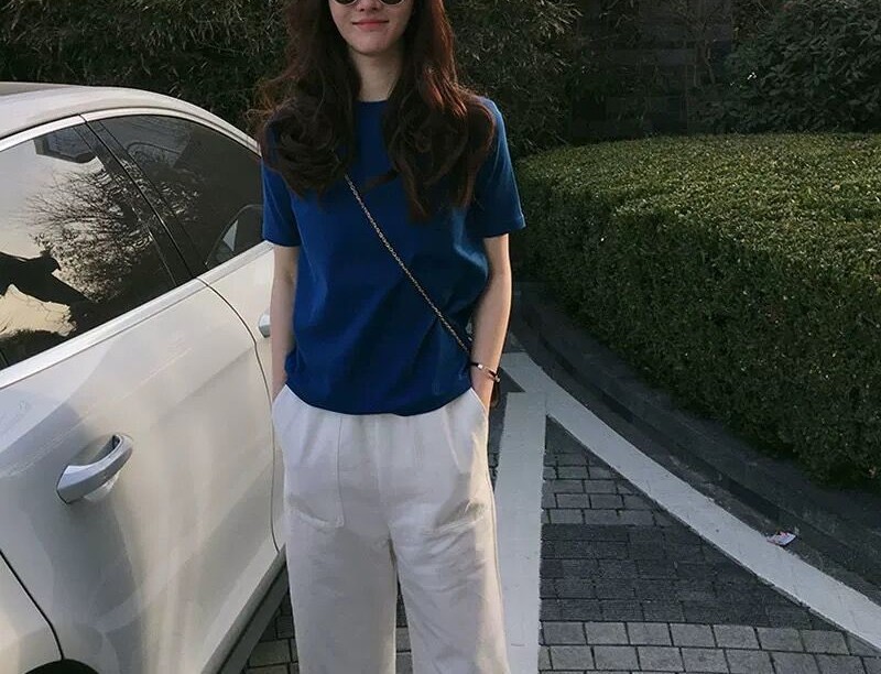 纯色正肩女士短袖T恤夏季新款圆领ins宽松体恤上衣圆领内搭打底衫