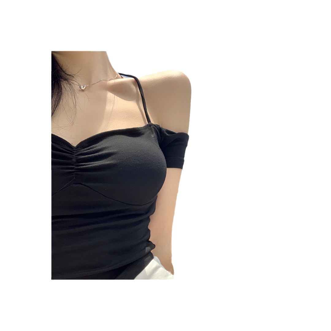 纯欲性感辣妹一字肩锁骨无袖吊带上衣新款修身短款别致上衣