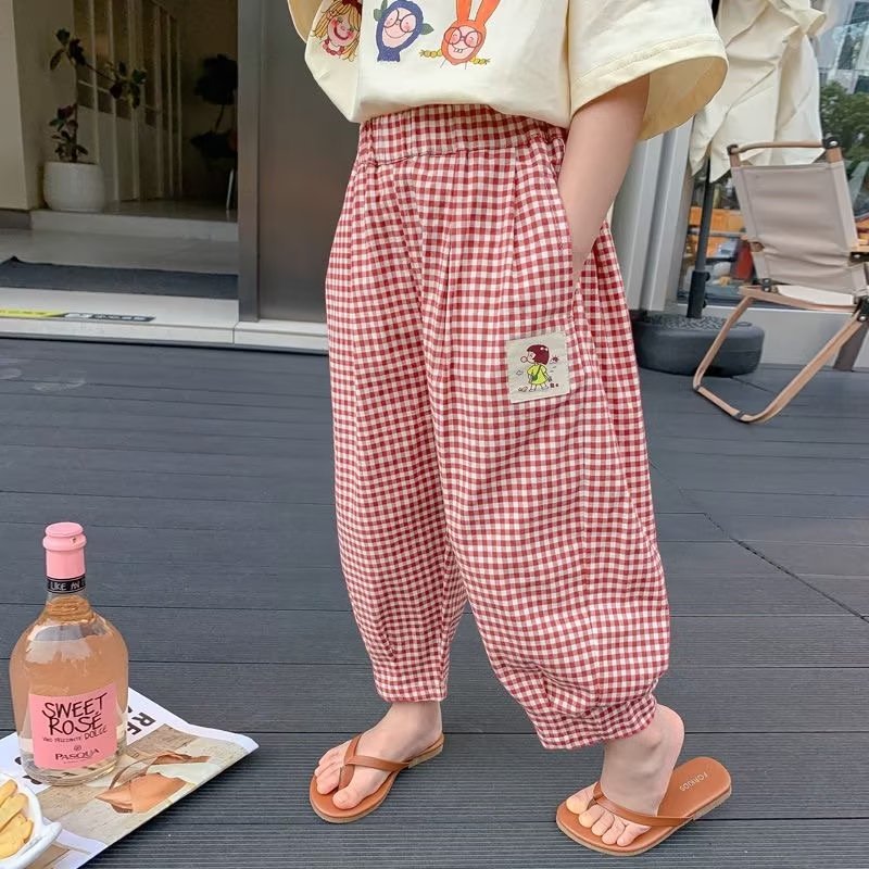 女童裤子新款洋气秋季女孩春秋儿童装休闲格子长裤宝宝防蚊裤