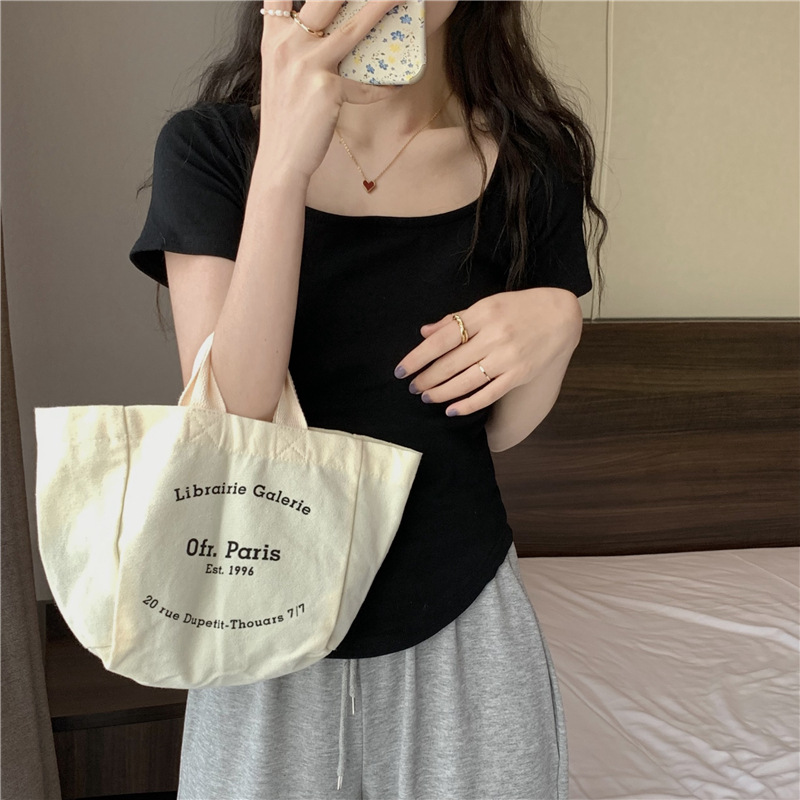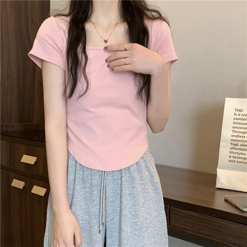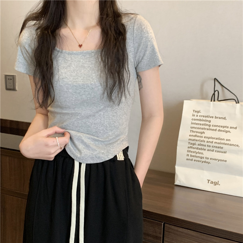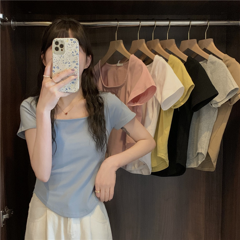 夏季短款显瘦多巴胺上衣法式小众薄款方领设计感新款韩修身潮ins