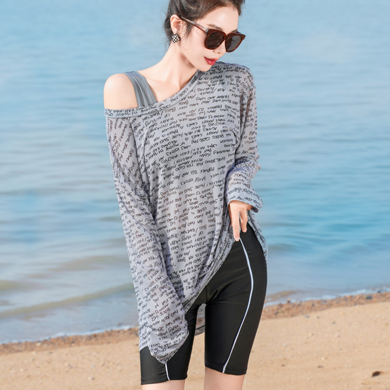 新款长袖长腿游泳衣女分体三件套运动保守显瘦遮肚大码泳装