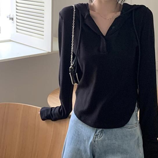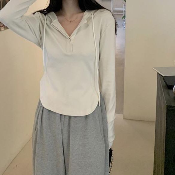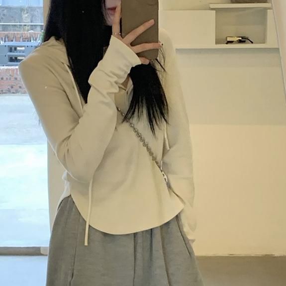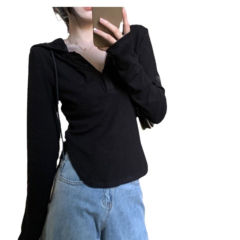 连帽长袖卫衣T恤女秋装新款韩版小众设计感时尚打底外穿学生上衣