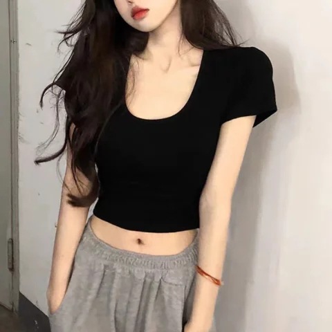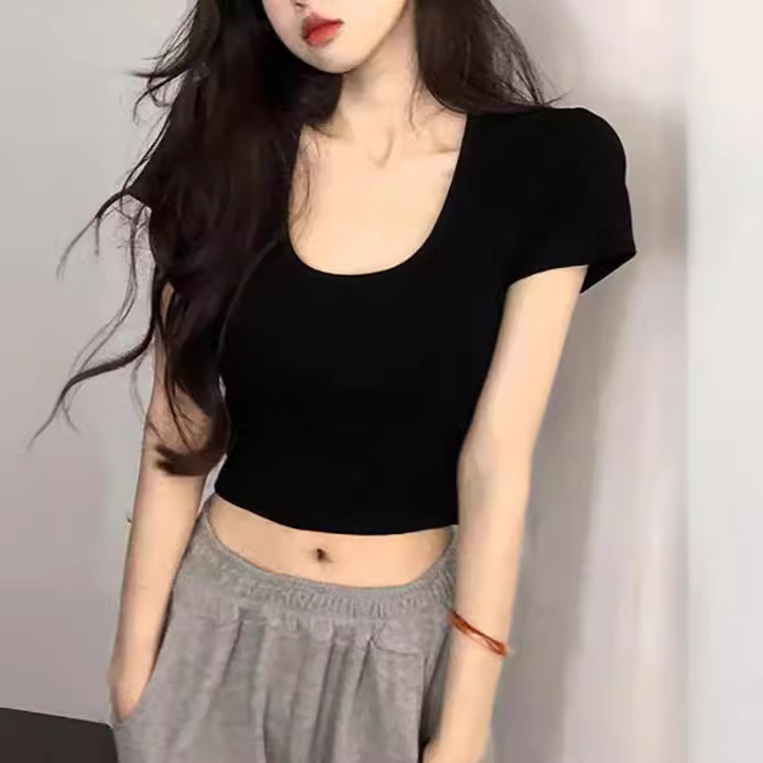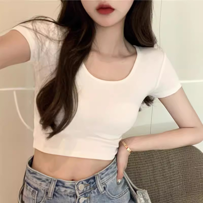 棉质御姐炸街短款女t恤修身白色露脐夏不规则韩版ins性感小众上衣