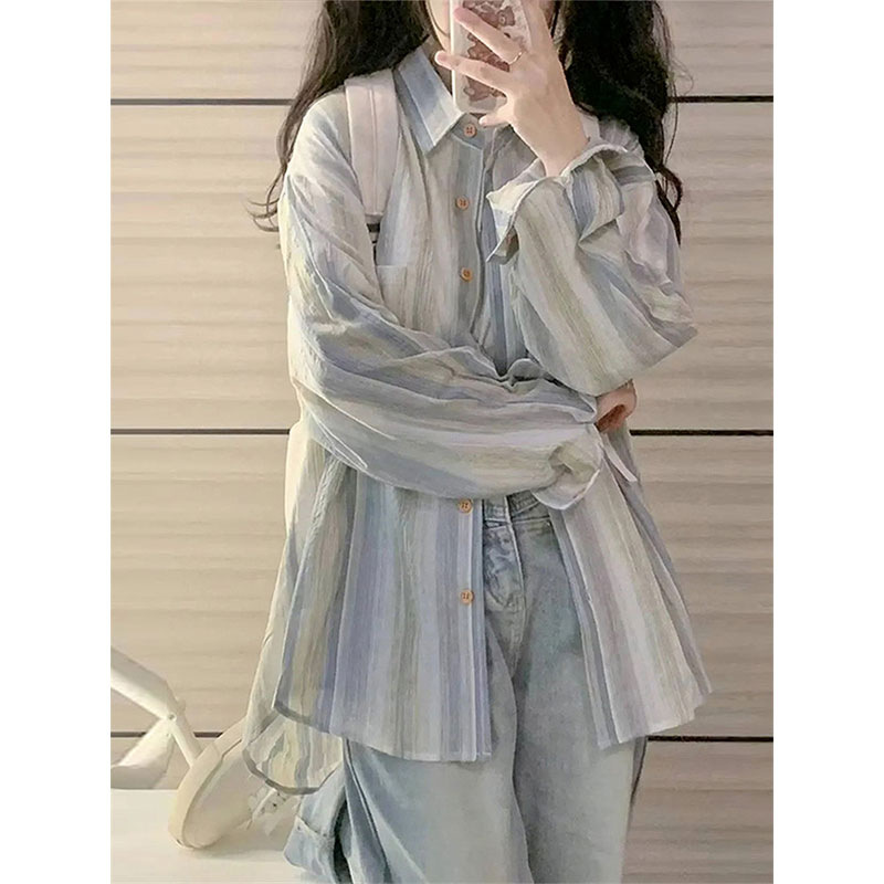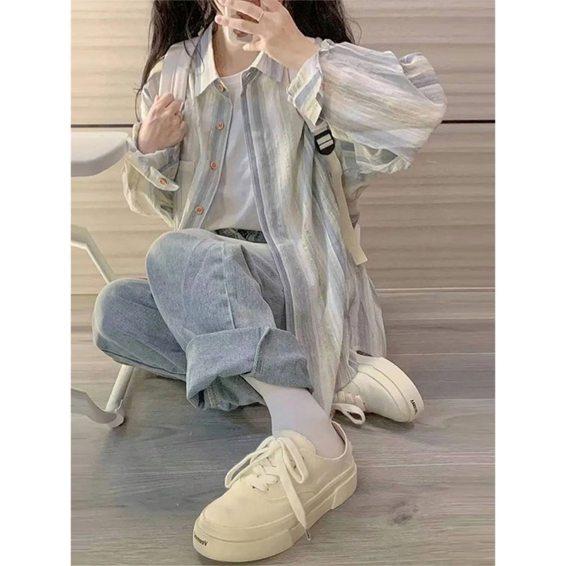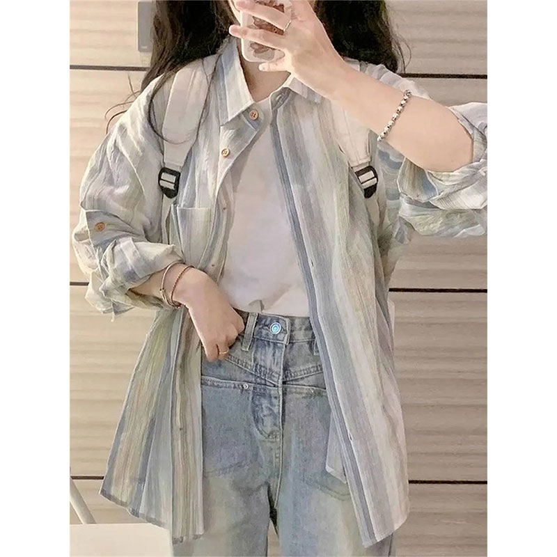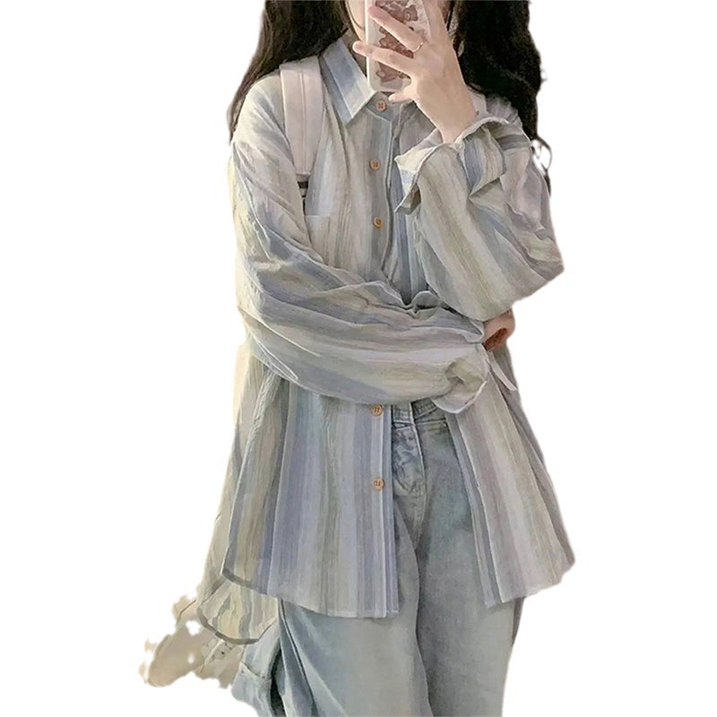韩系小清新氛围感学生文艺长袖衬衫女宽松显瘦薄款外搭防晒外套潮