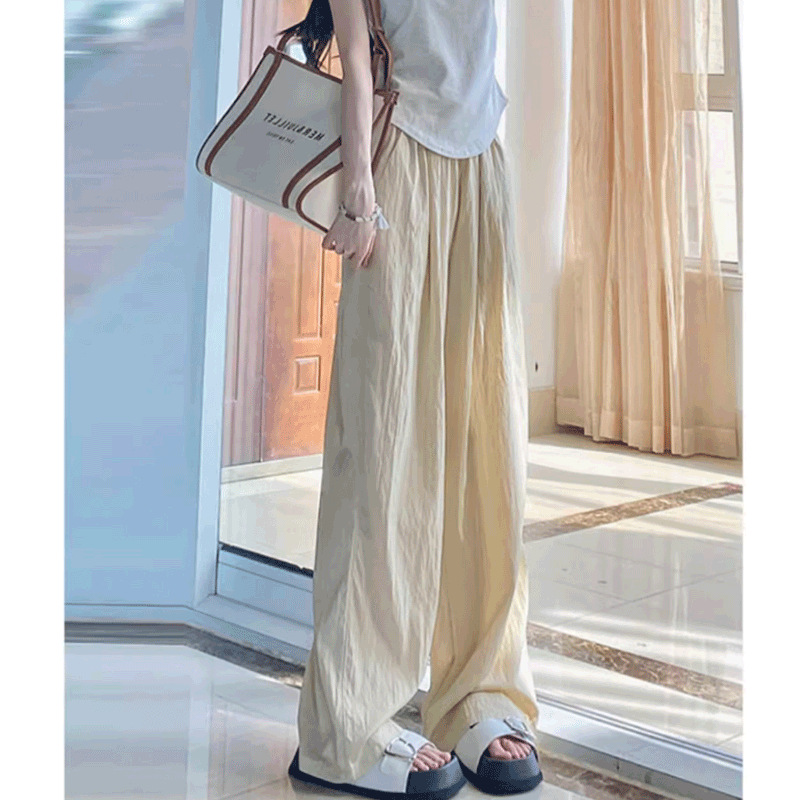 billkong韩系浅卡其薄日系高腰禅意阔腿裤肌理禅意懒人拖地山本裤