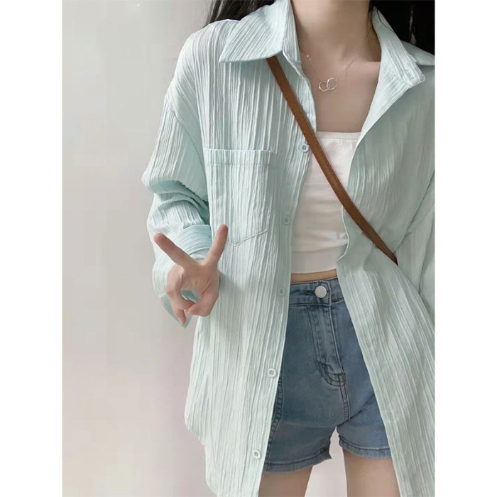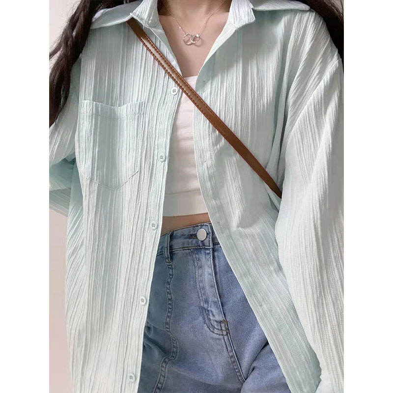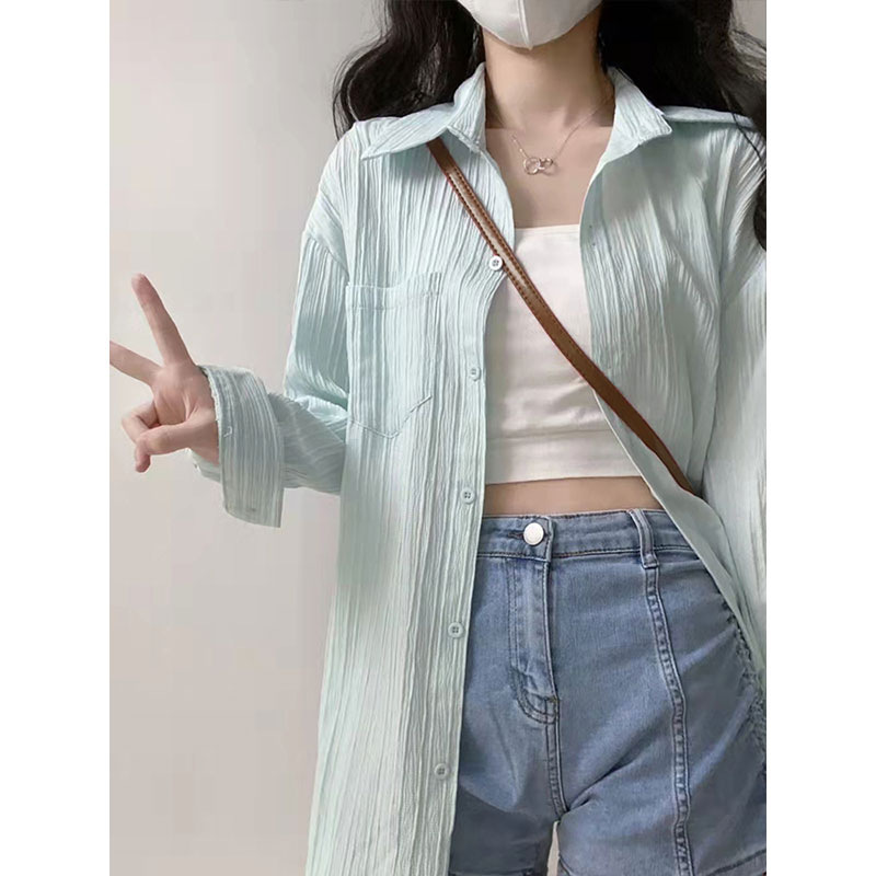 春秋设计感小众文艺乖乖女薄款衬衣外套女法式肌理高级感防晒衬衫