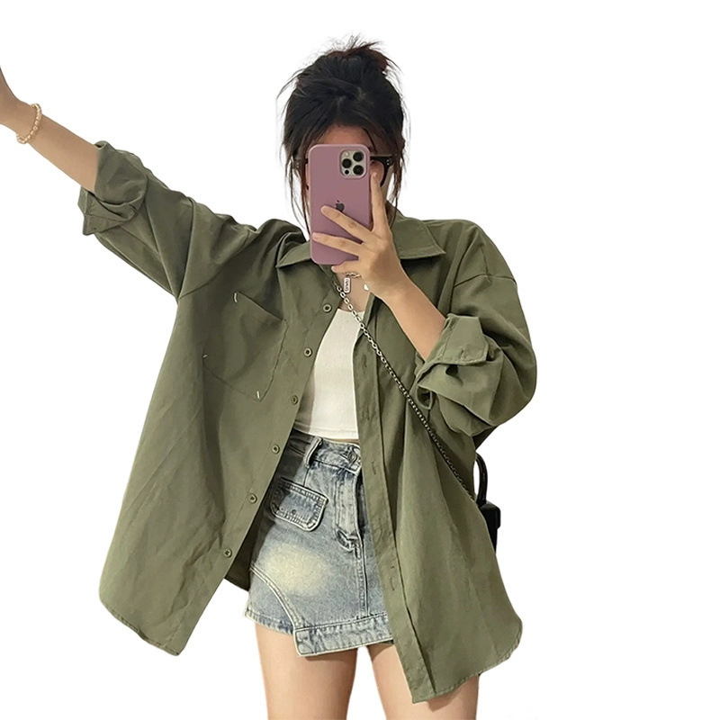 高级感绿色长袖衬衫女新款秋季法式设计早秋防晒开衫外套衬衣