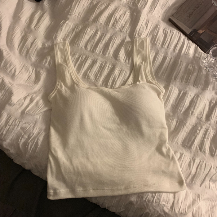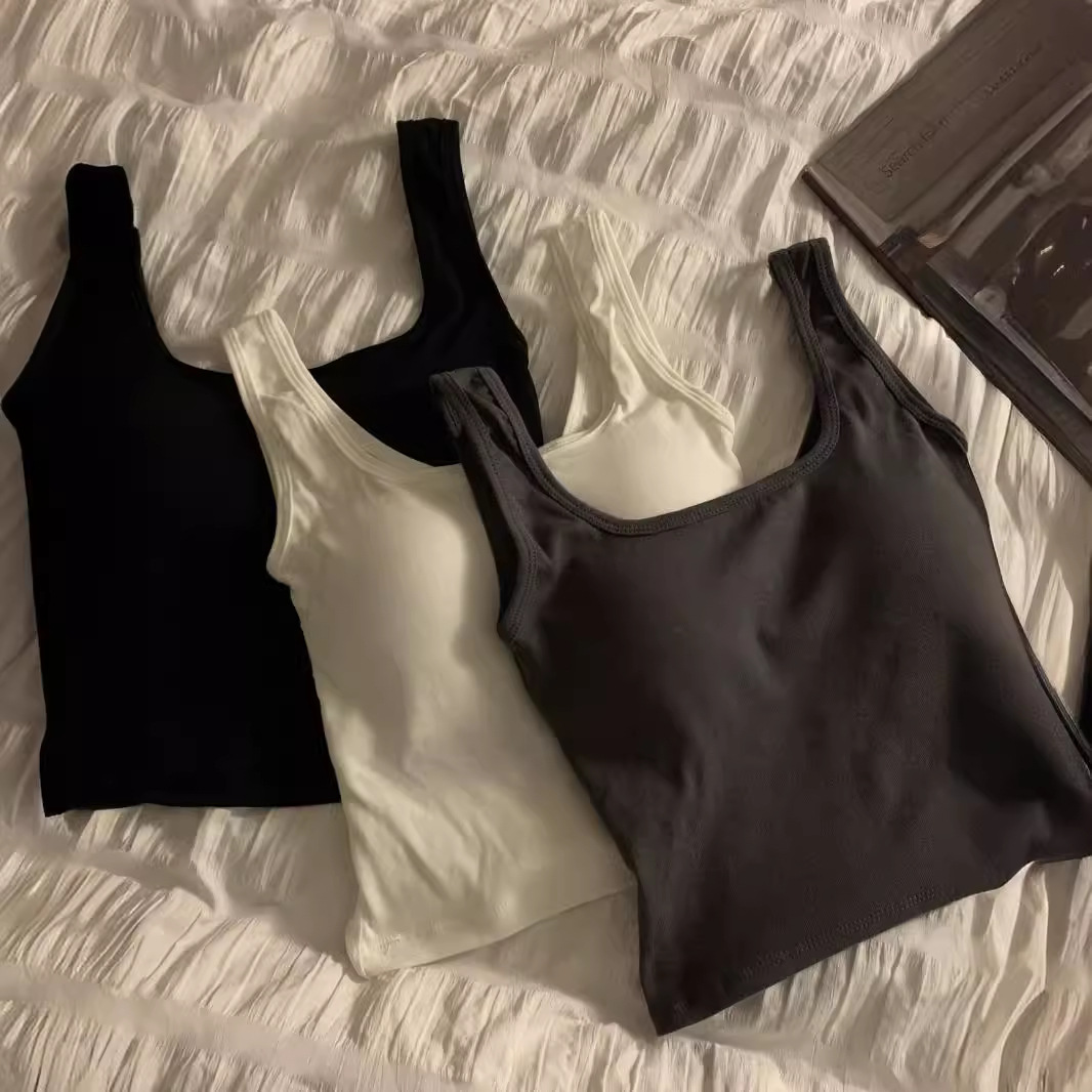 纯色背心吊带女自带胸垫固定杯背心遮副乳百搭内搭外穿简约背心