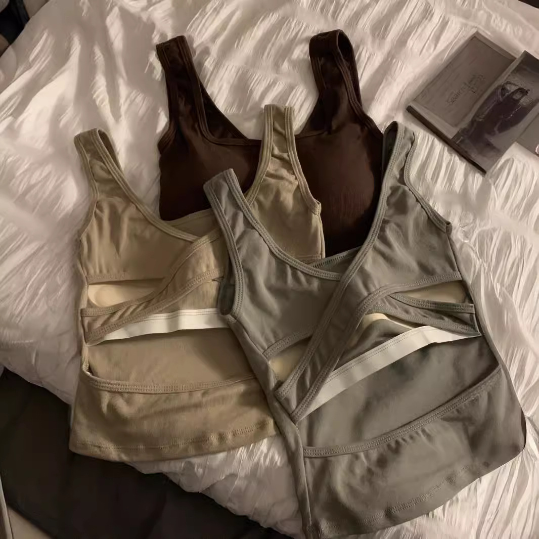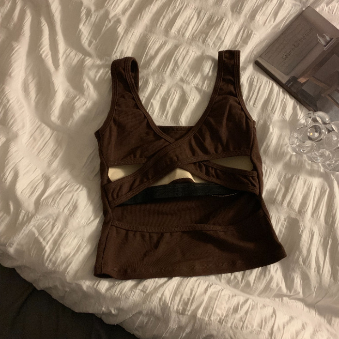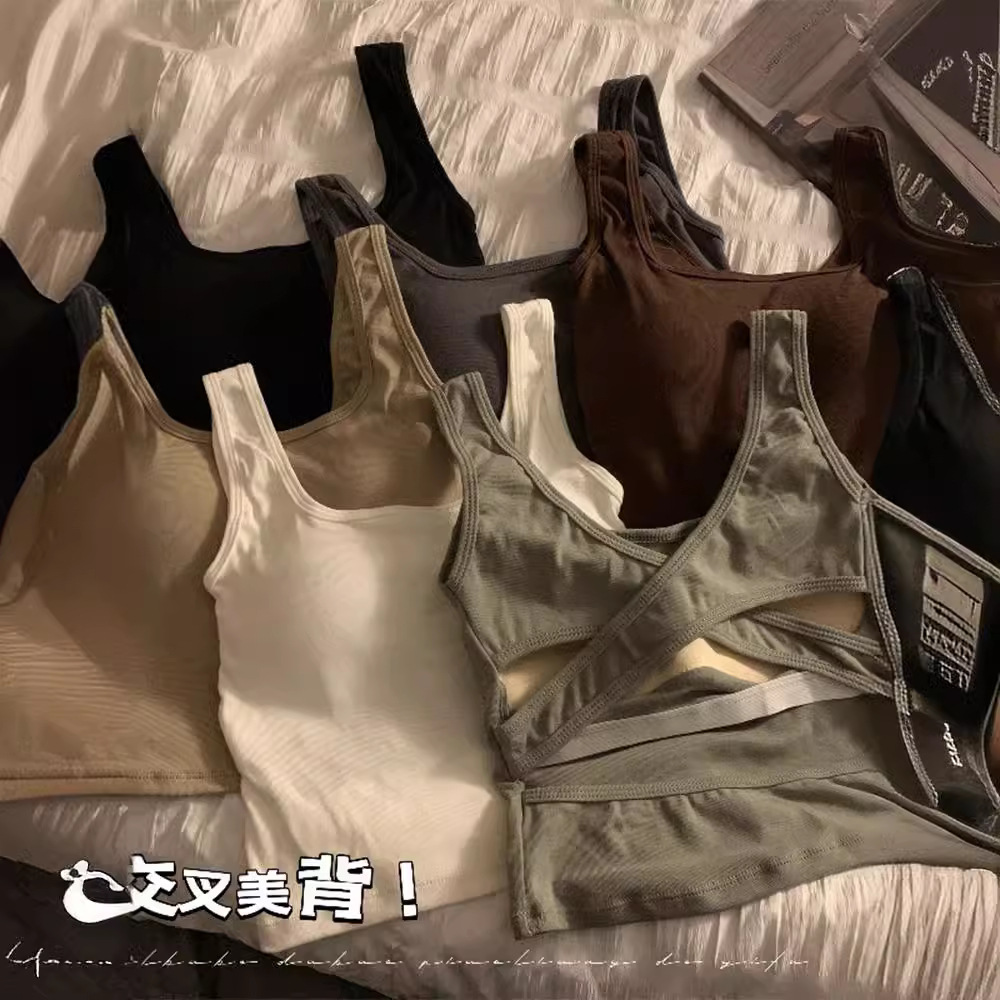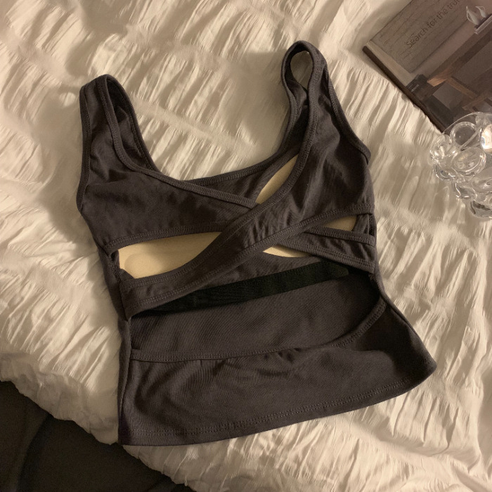 小众交叉露背带胸垫背心吊带女夏季新款辣妹内搭外穿美背上衣