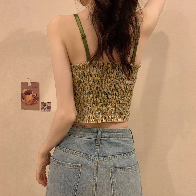 夏季甜辣妹碎花吊带女修身显瘦带胸垫可外穿背心短款别致内搭上衣