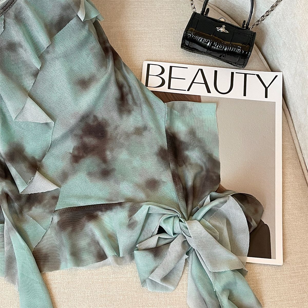 【跨境批发】2025夏季新款扎染荷叶边不规则吊带背心辣妹无袖上衣