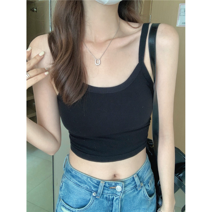带胸垫美背短款吊带背心女夏季甜辣妹设计感修饰露背外穿打底上衣