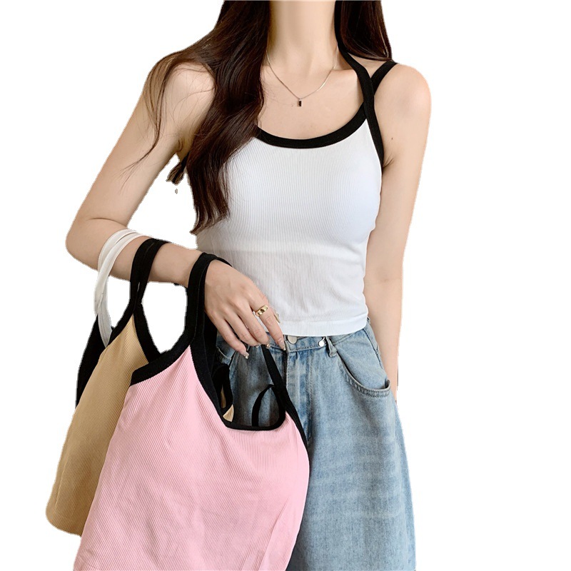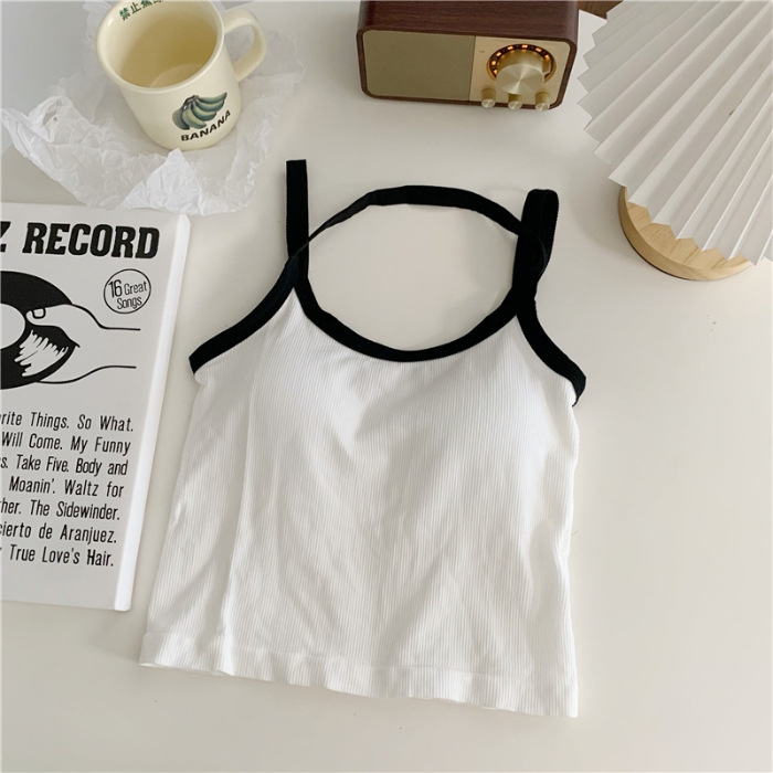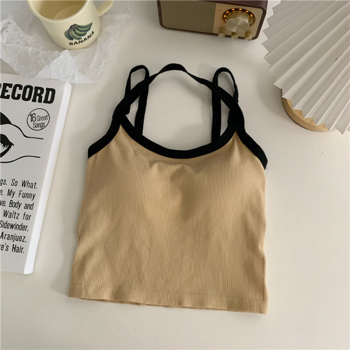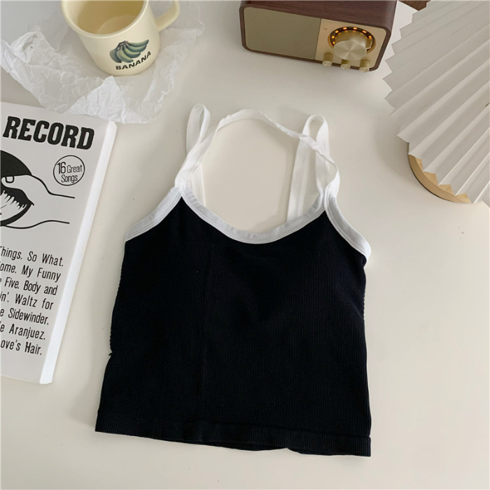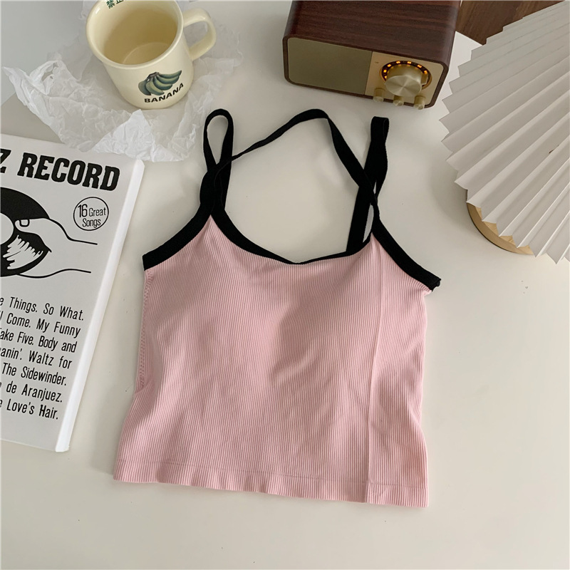甜辣妹纯欲风短款小吊带夏修身露肚脐上衣美背带胸垫运动背心外穿