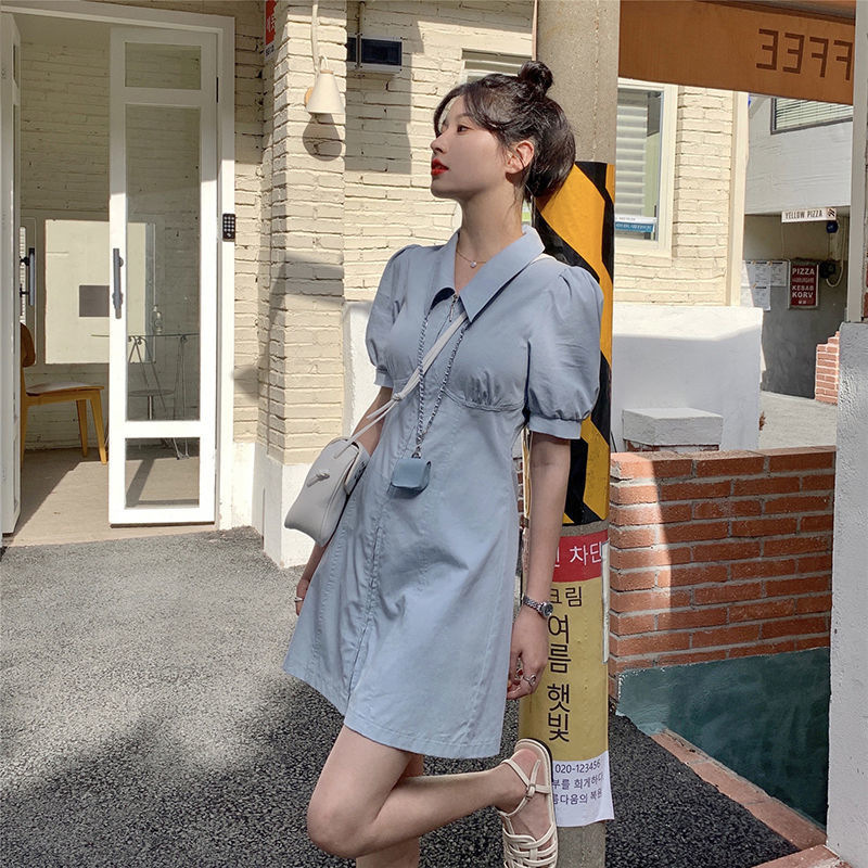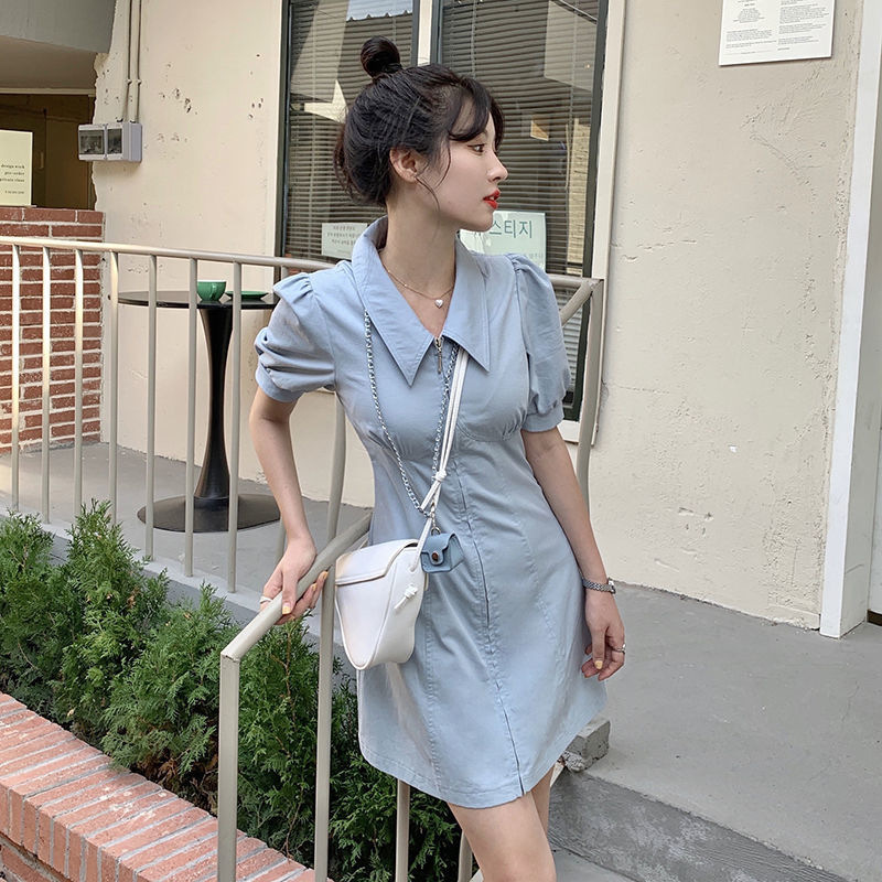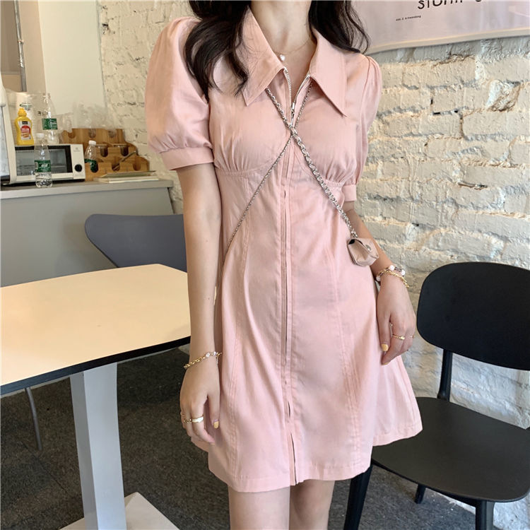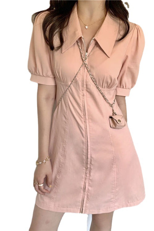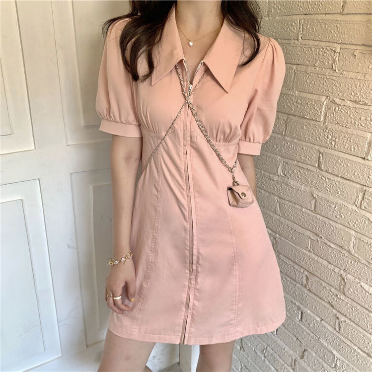 春夏季气质短袖连衣裙女小个子设计感拉链收腰显瘦Polo领短裙