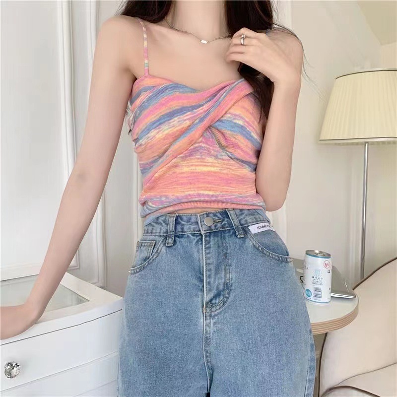 小众设计感背心吊带女夏季新款修身显瘦百搭条纹针织外穿上衣