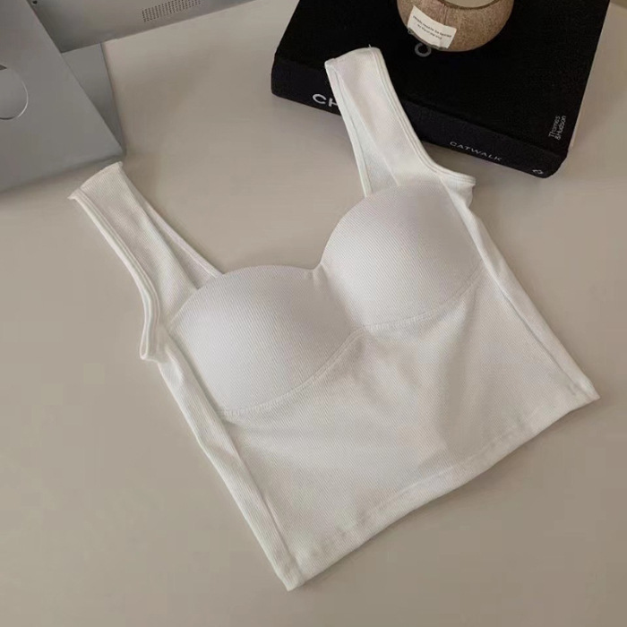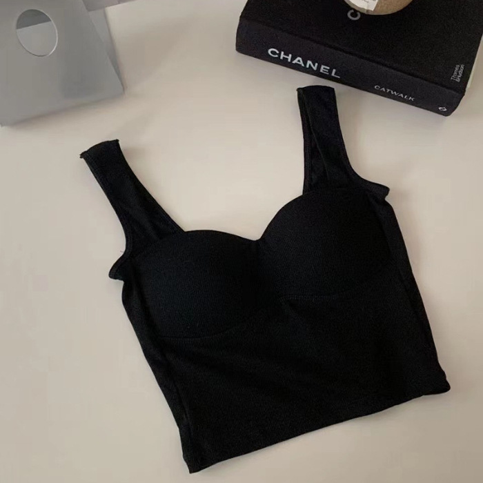 欧美辣妹吊带背心女春夏季纯色带胸垫美背内衣内搭外穿打底衫