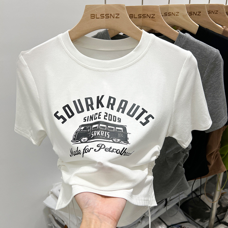 设计感小众绑带螺纹短袖t恤女夏装韩版新款修身洋气圆弧小衫上衣