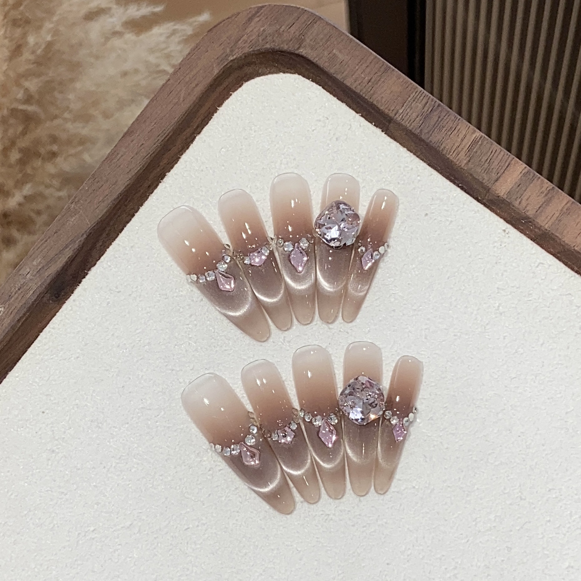一只顾美甲 显白冰透渐变微笑猫眼法式粉色肥方柿子冻冻穿戴甲