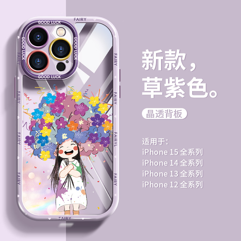 适用苹果15手机壳15Promax新款14透明13女11烟花女孩