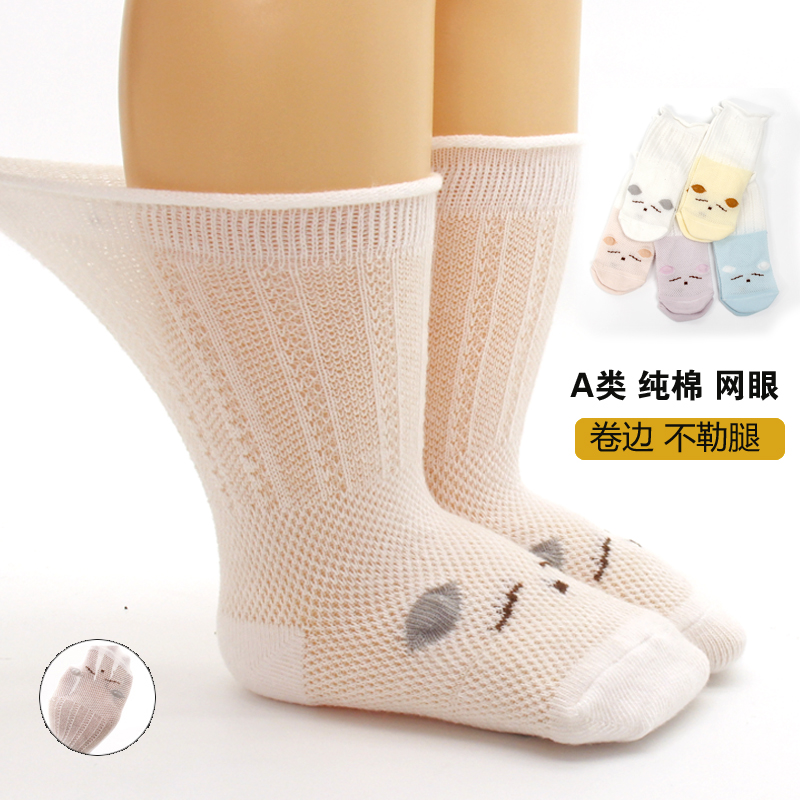 婴儿袜子夏季薄款纯棉0一3月新生儿宝宝中筒袜夏天网眼透气不勒腿