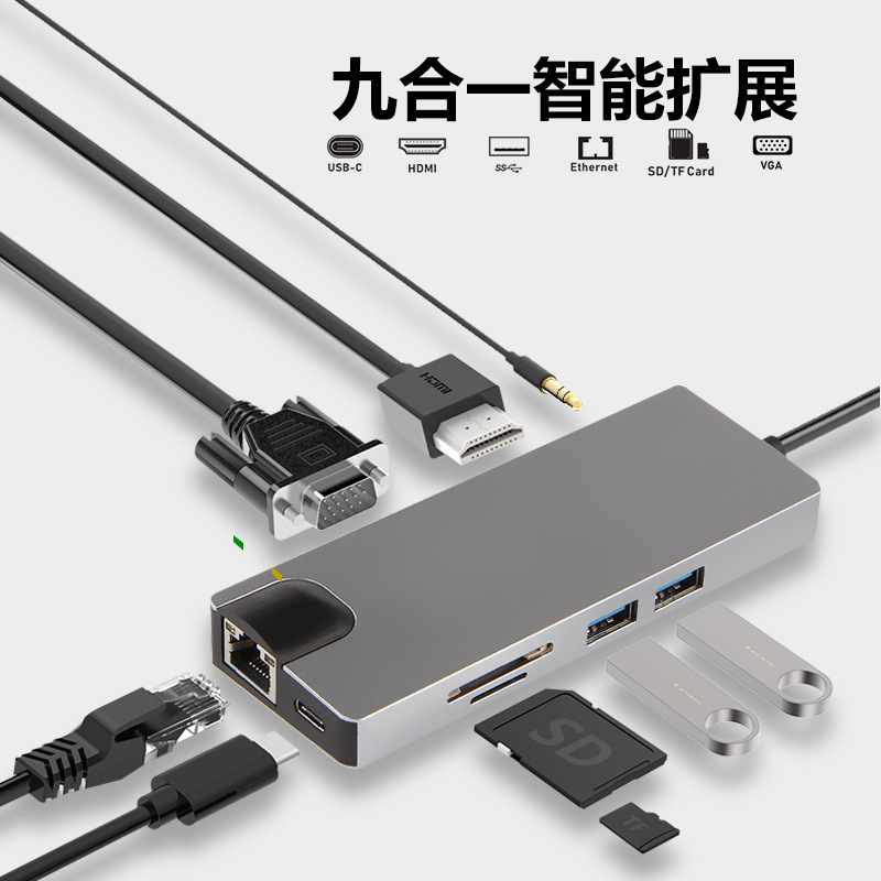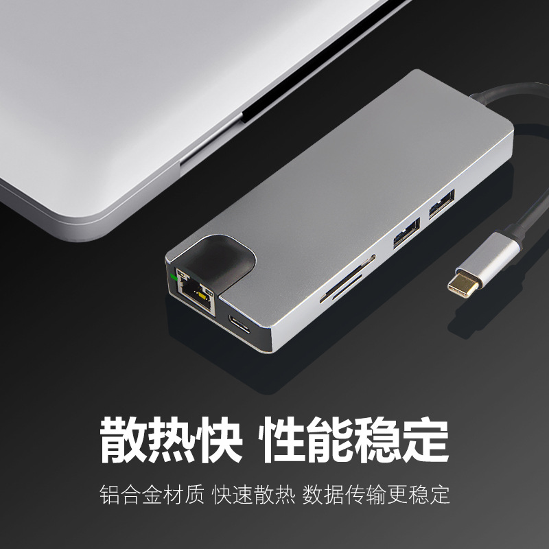 typec hub转vga hdmi4k rj45千兆网口 电脑八合一usbc拓展坞