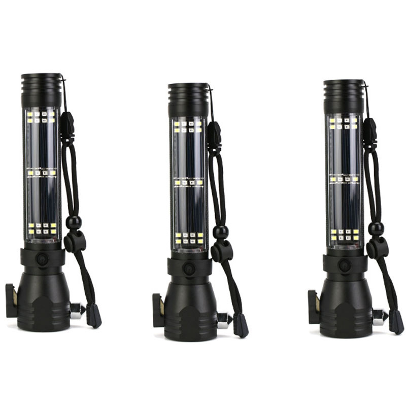 强光太阳能户外多功能手电筒安全锤消防应急自救强光报警逃生锤