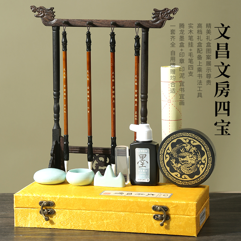 文房四宝笔挂精品套装文昌位布局全套一整套高档文昌毛笔4支摆件
