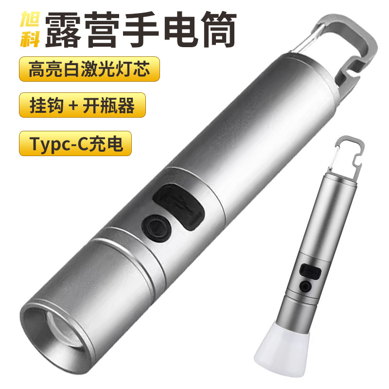 铝合金手电筒可充电柔光罩露营手电多功能强光照明灯户外营地