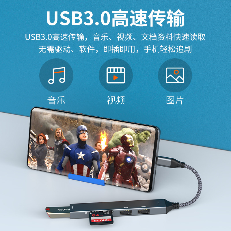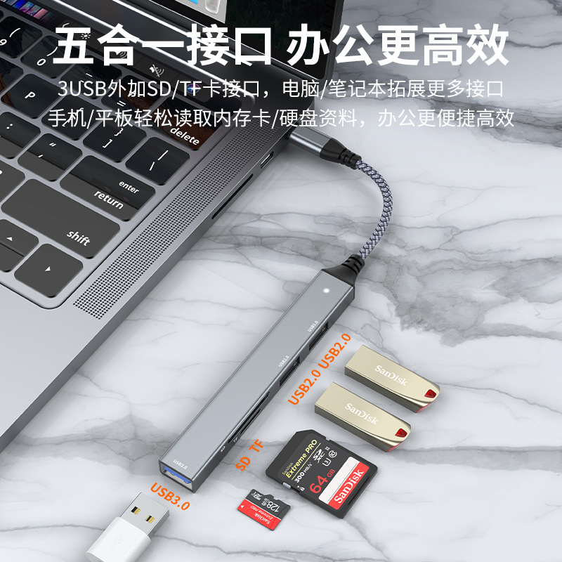 五合一扩展坞type-c拓展坞macbook集线器hub笔记本usb扩展器