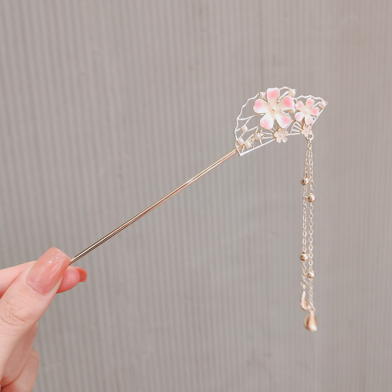 扇子樱花古风发簪高级感女新款夏季气质发钗流苏汉服步摇簪子