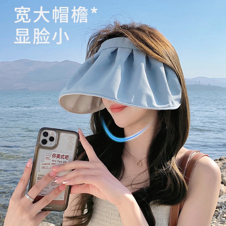 防晒帽女夏季防紫外线空顶遮阳帽太阳帽子大檐遮脸可折叠贝壳夏天