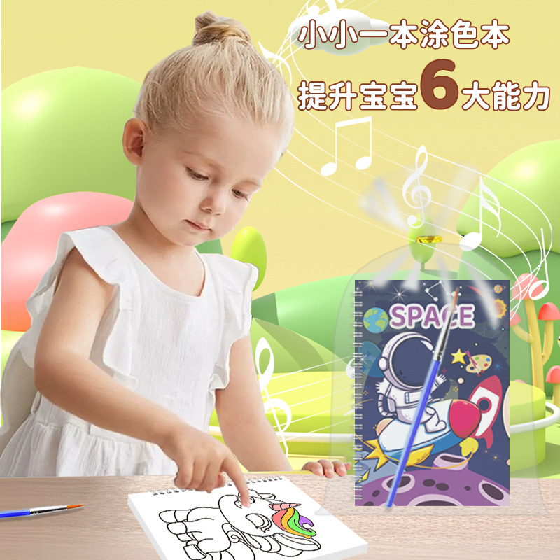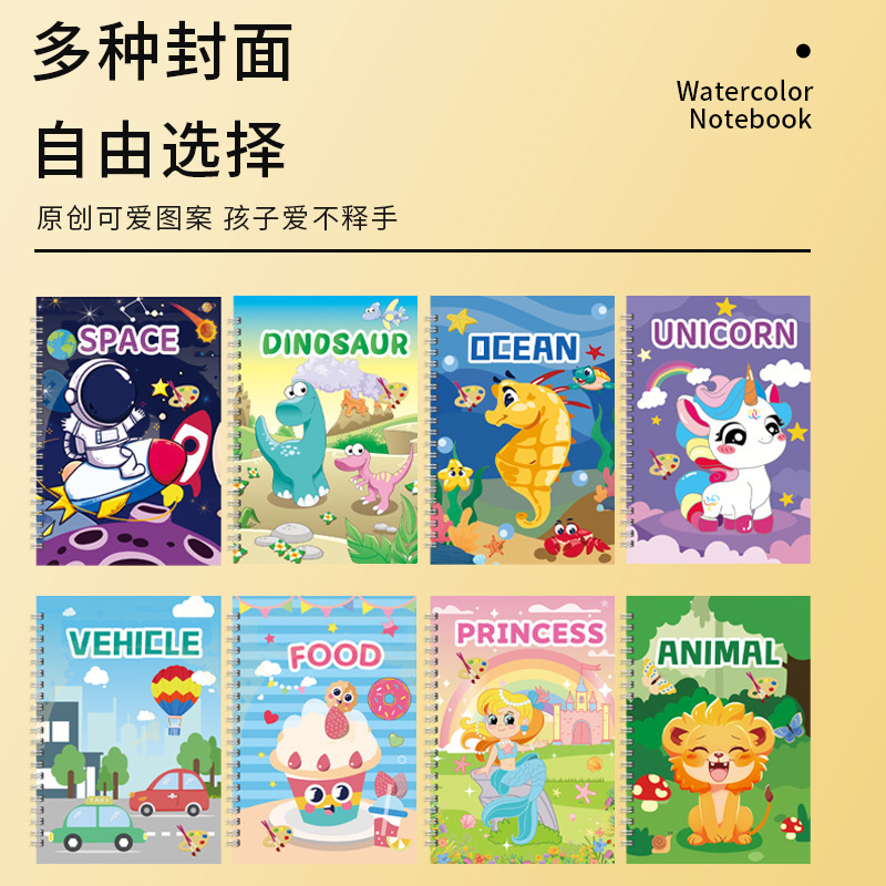 英文版儿童水彩涂色本自带颜料动物公主益智填色沾水绘画本涂