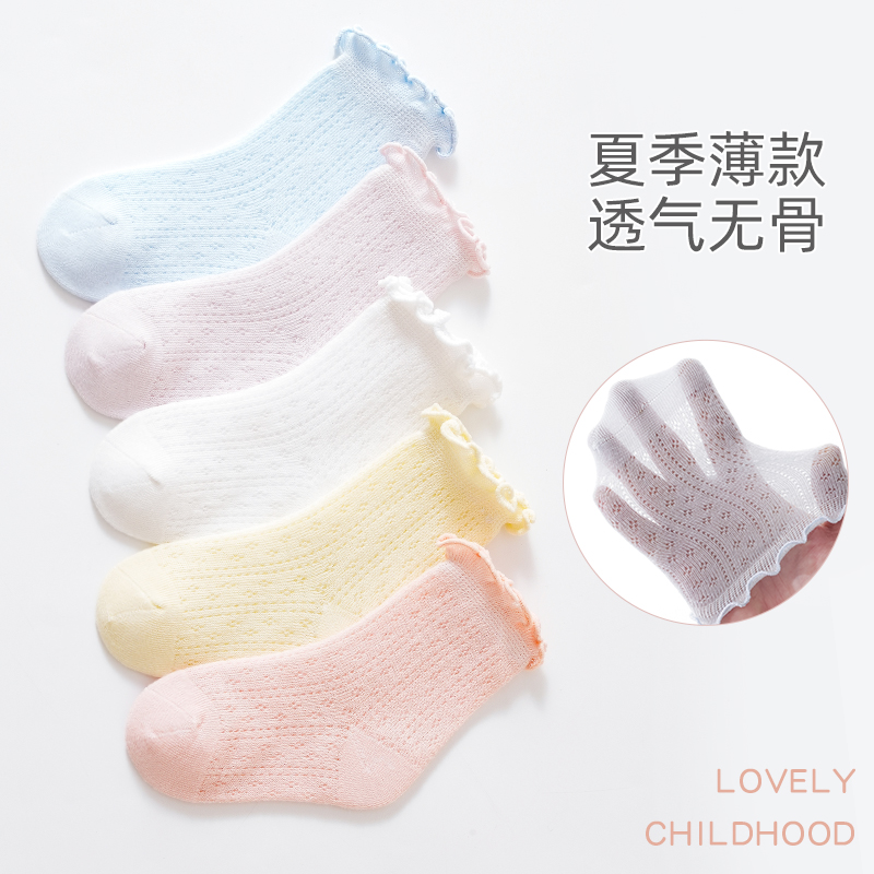 宝宝袜子夏季薄款网眼儿童女松口无骨透气薄款夏天新生婴儿中筒袜