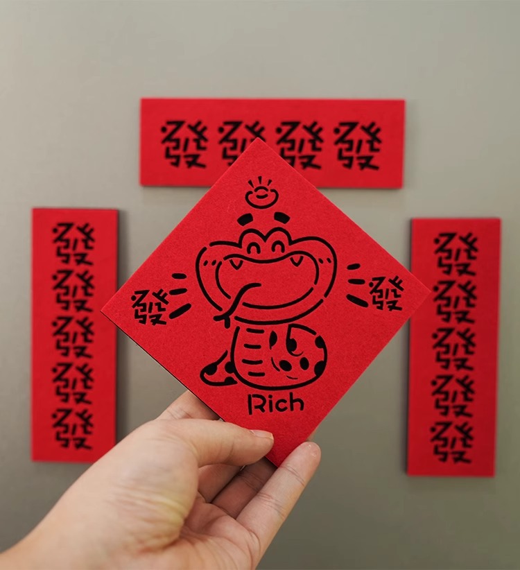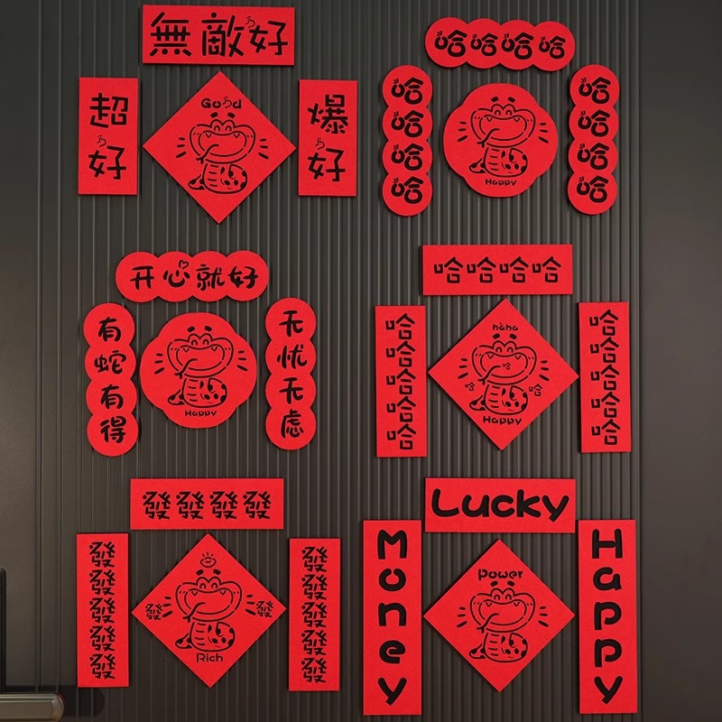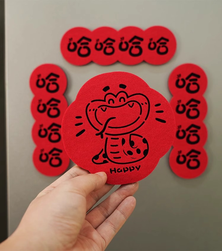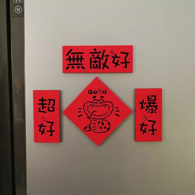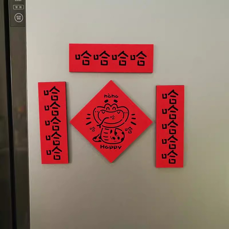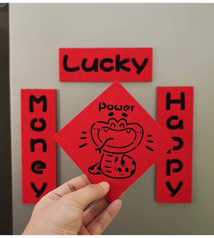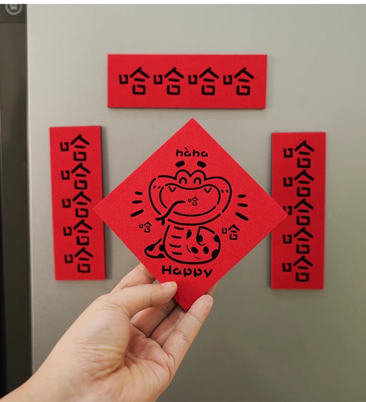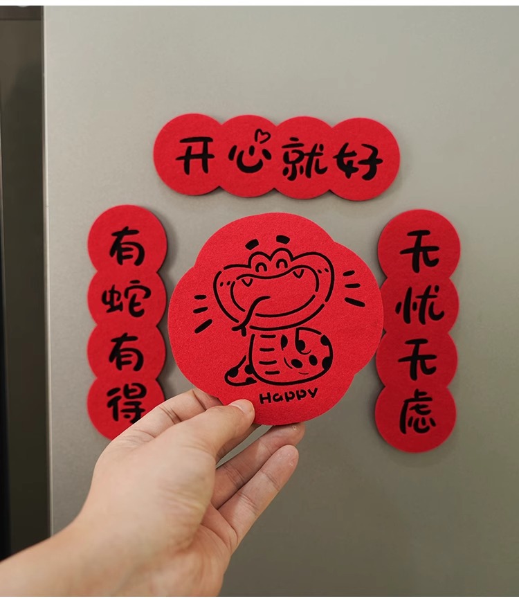 2025蛇年可爱不织布迷你对联冰箱贴磁吸小春联福字