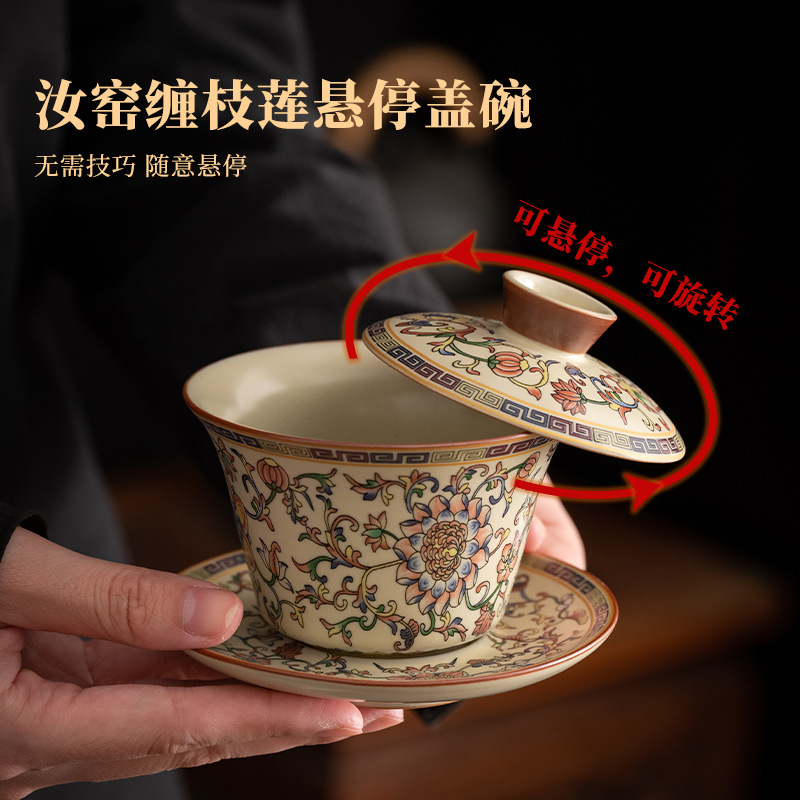 汝窑开片悬停三才盖碗家用陶瓷高档单个泡茶敬茶碗功夫茶具
