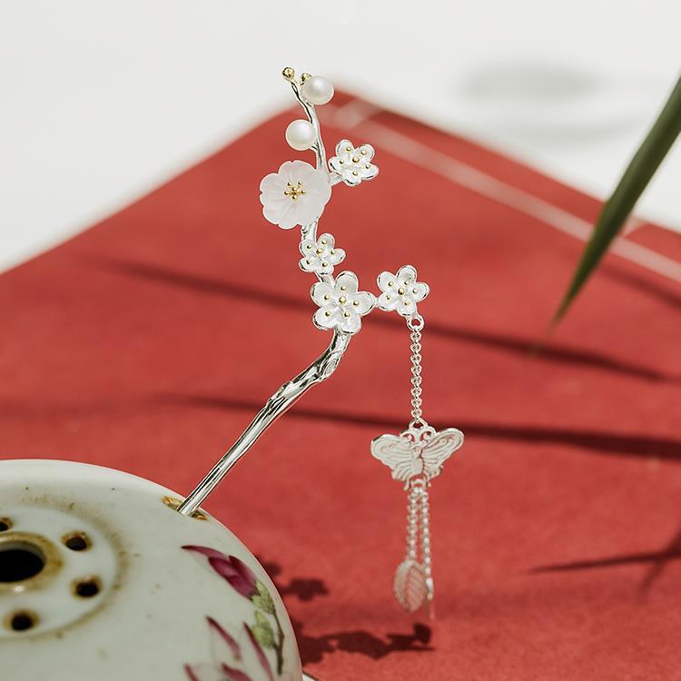 新小梅花流苏发簪女民族风纯银古风中式古典汉服发钗头饰簪子
