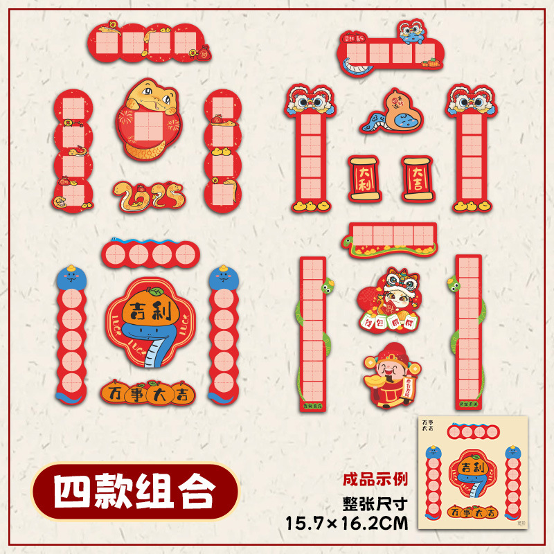 2025蛇年创意手写迷你贴纸卡通电脑教室装饰新春节日不干胶小对联