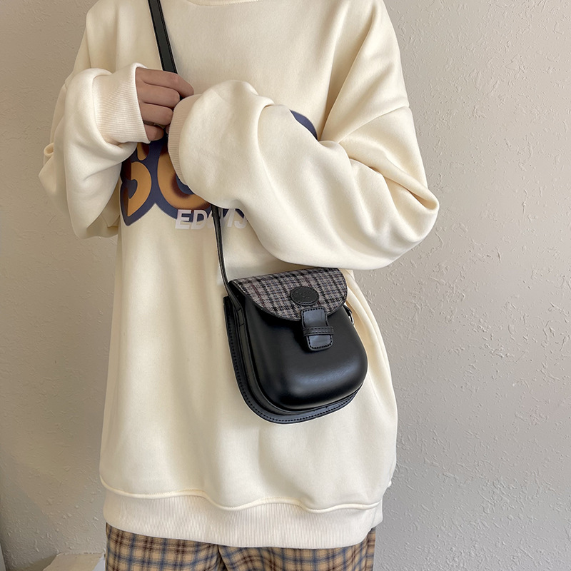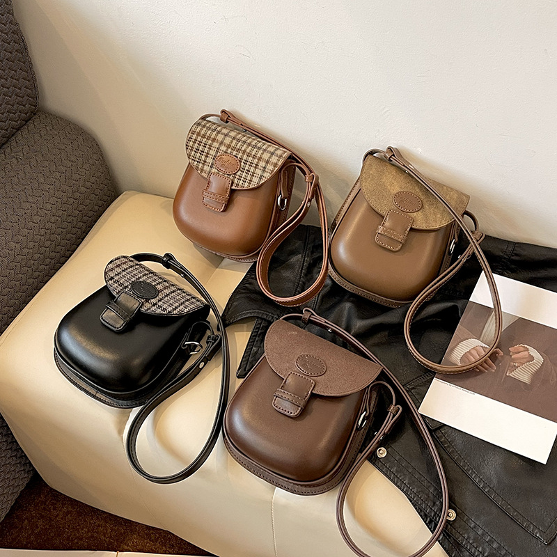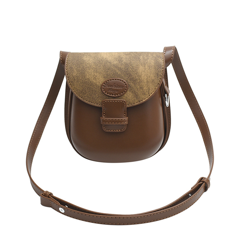 单肩包复古拼接撞色通勤马鞍包迷你装饰休闲小众设计通勤手机包
