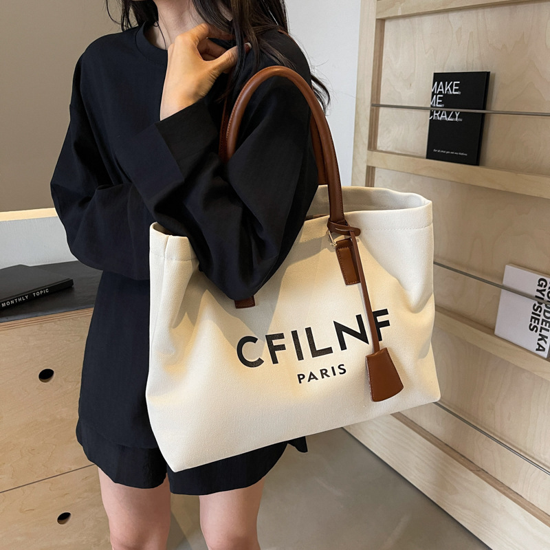 上班通勤托特包女新款复古时尚帆布大容量单肩包高级感腋下包