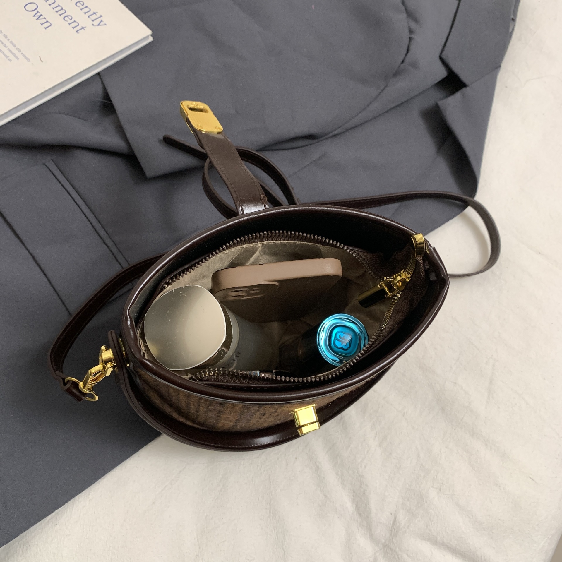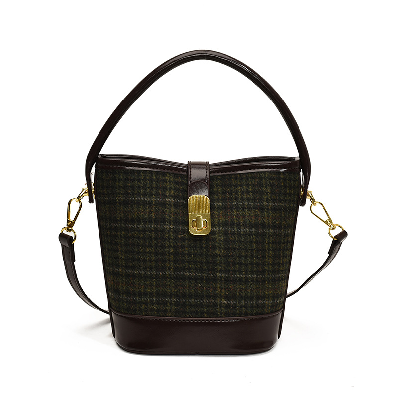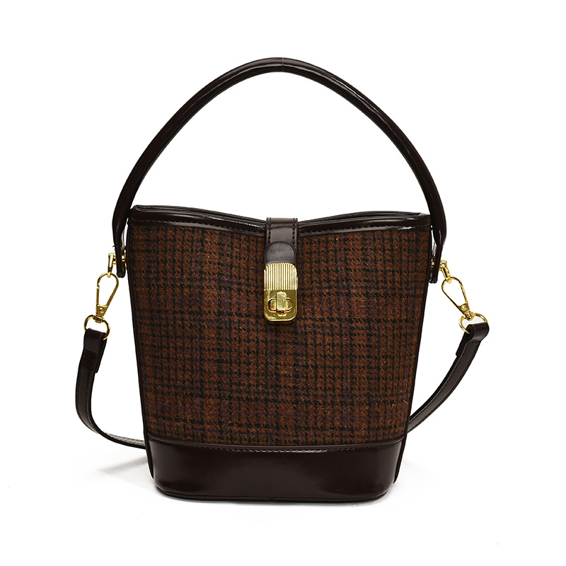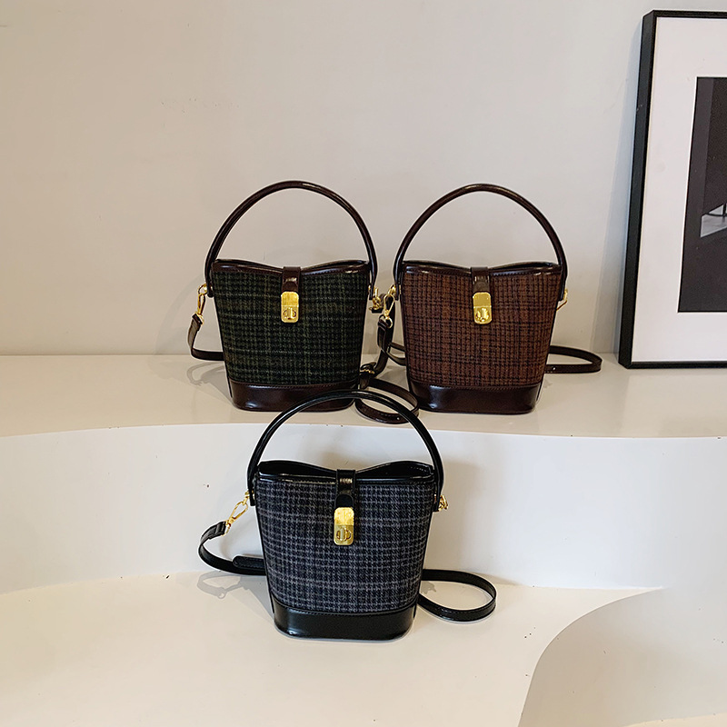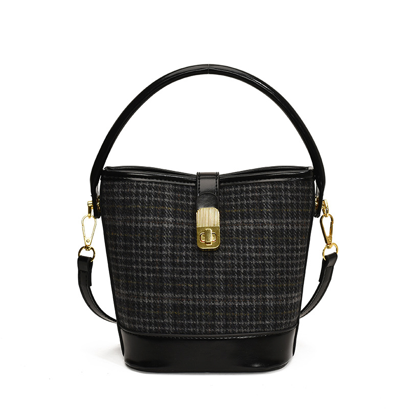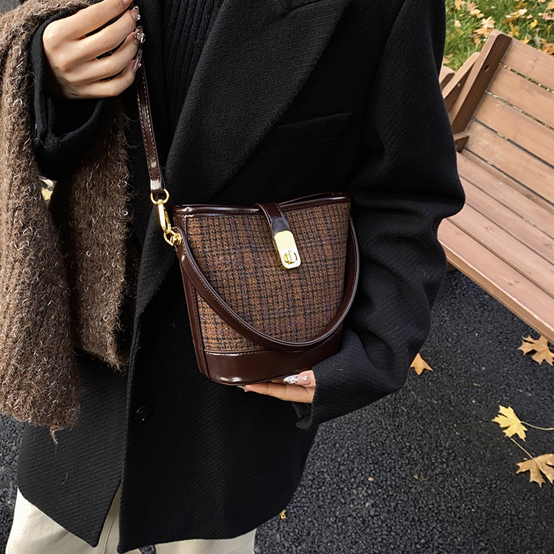 水桶包千鸟格复古质感休闲百搭单肩包拼接撞色大容量通勤包包女