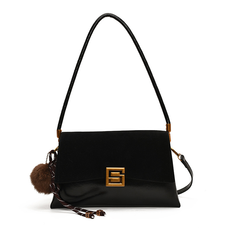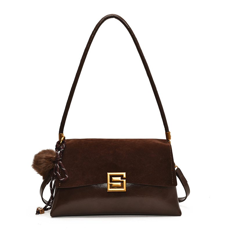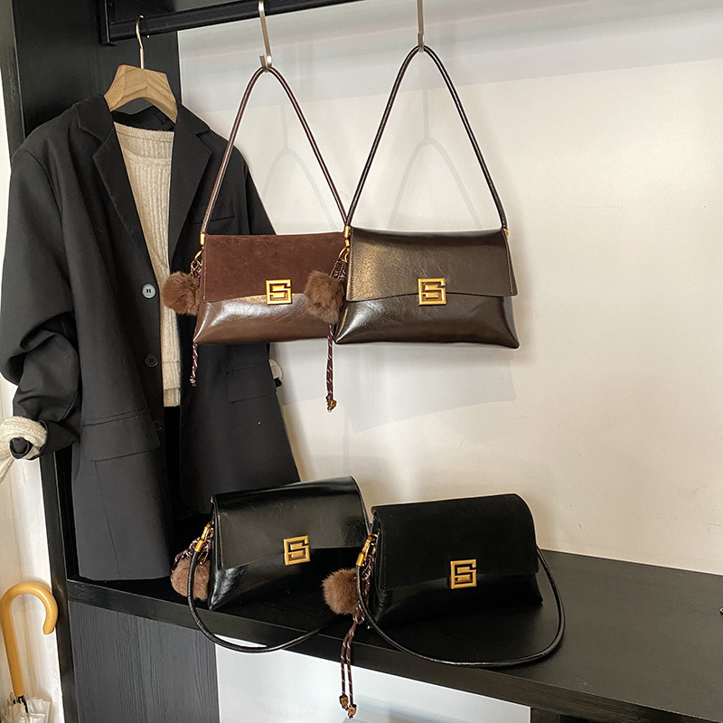 单肩包拼接磨砂质感休闲腋下包简约百搭通勤复古大容量女士包包