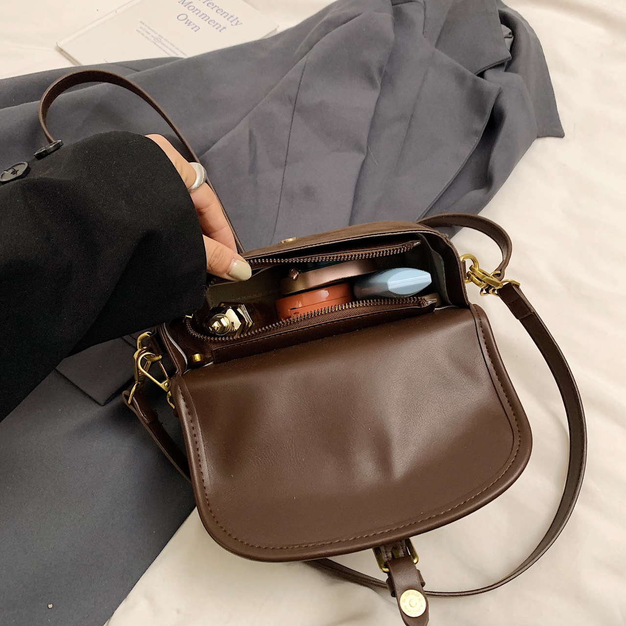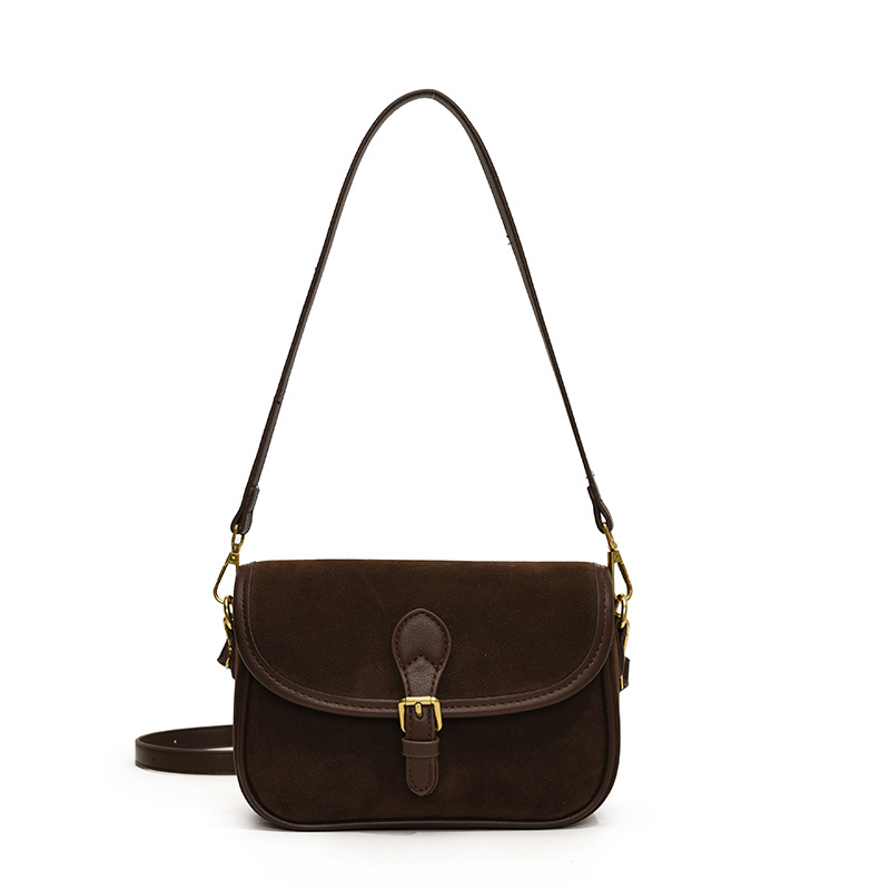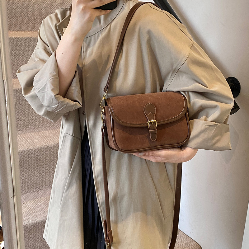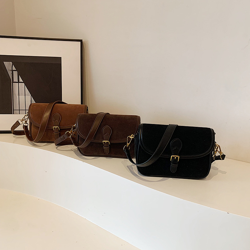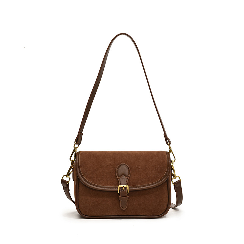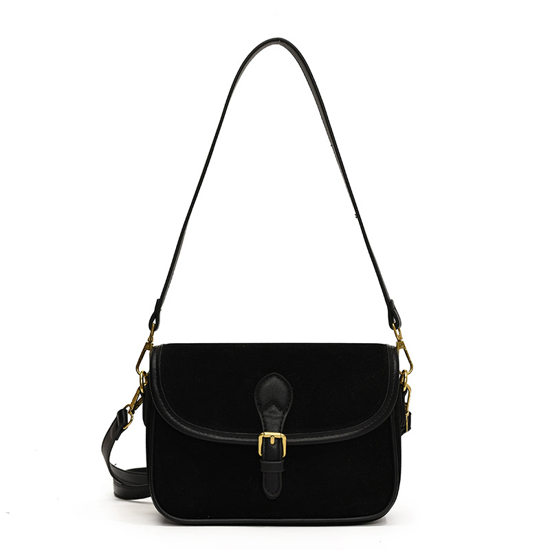 单肩包时尚休闲纯色质感麂皮绒马鞍包百搭通勤简约通勤包包