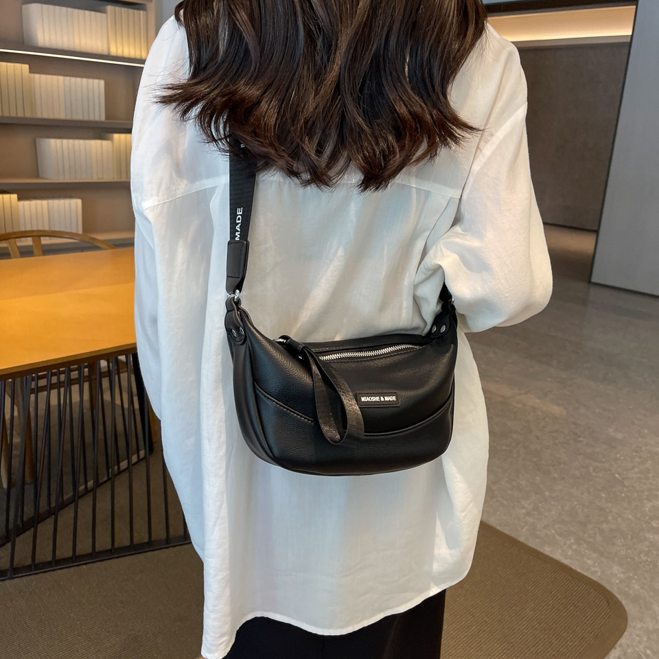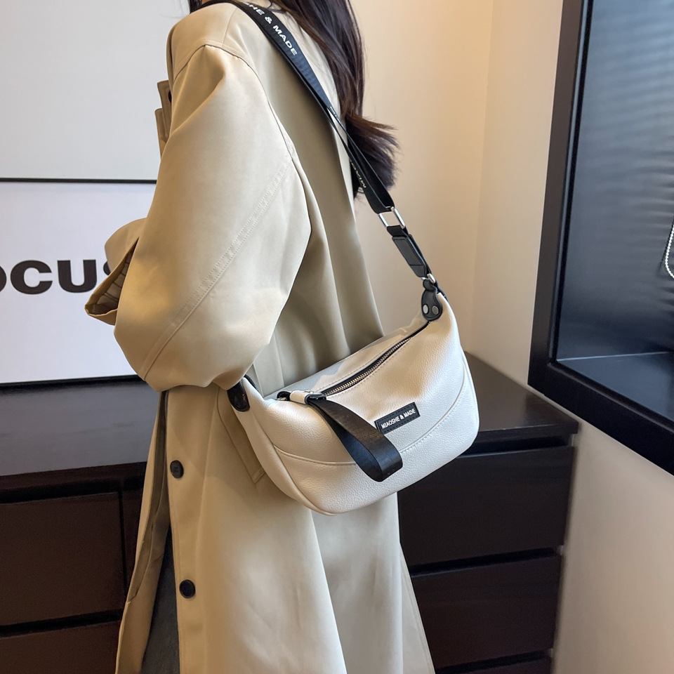斜挎包直播热销小众设计PU休闲单肩包纯色质感休闲通勤字母饺子包
