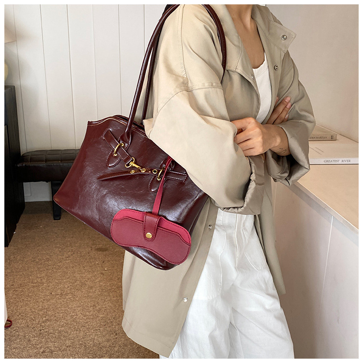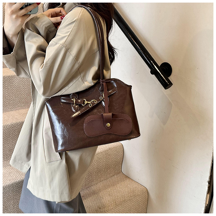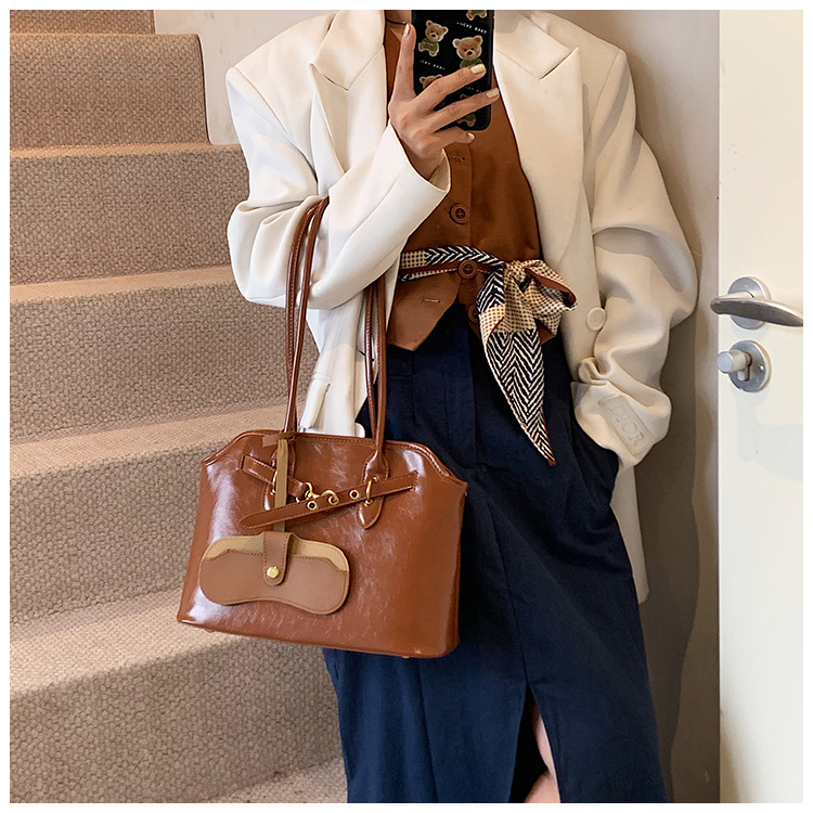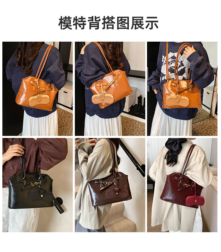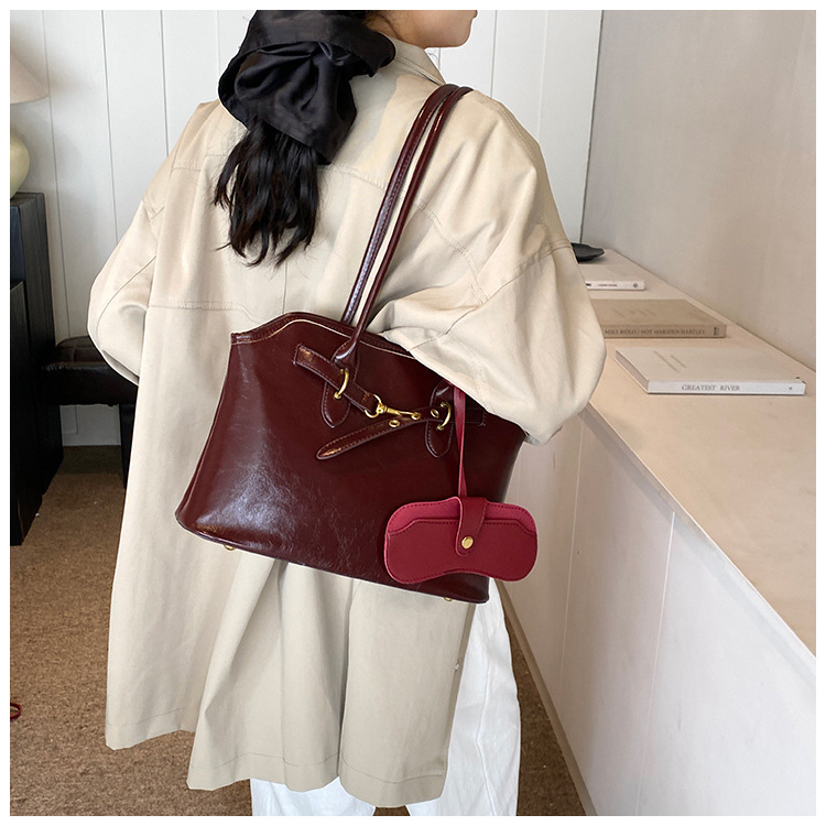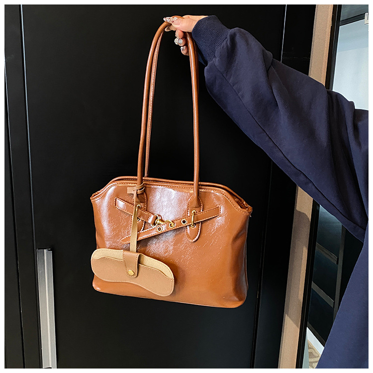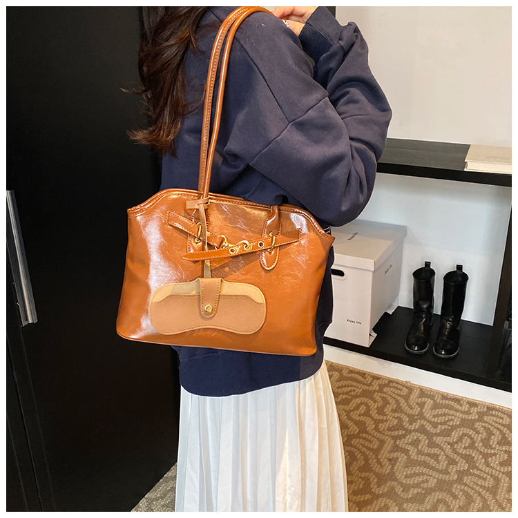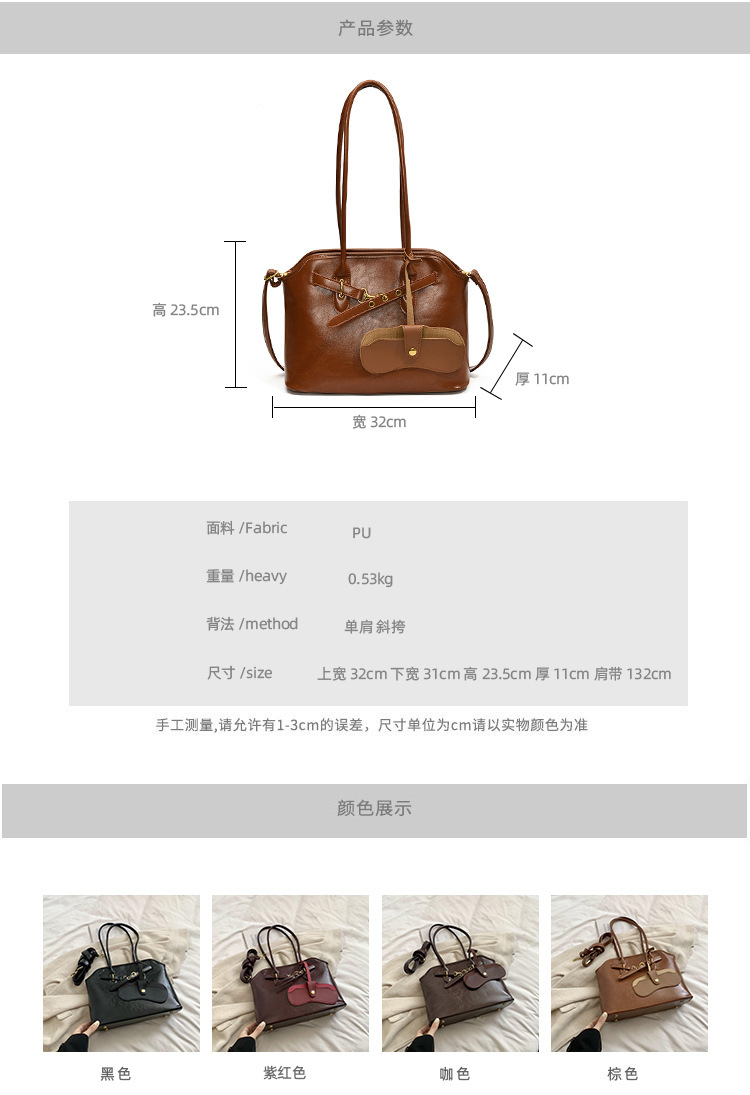 新款时尚纯色休闲简约通勤大容量单肩包托特包腋下包褶皱百搭