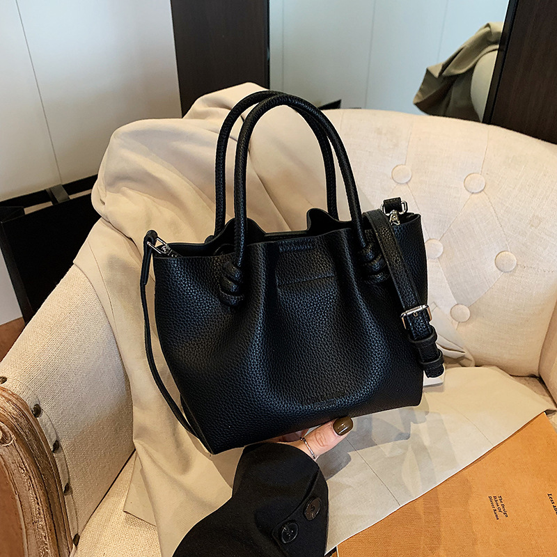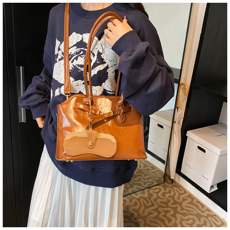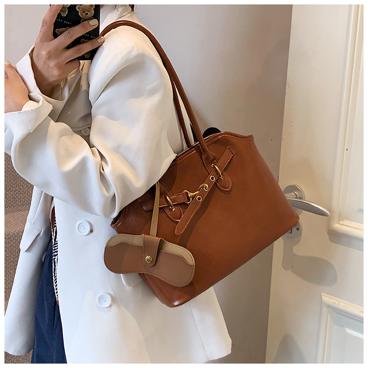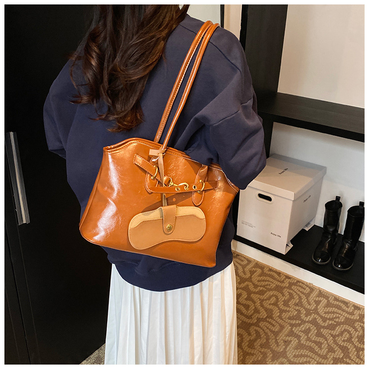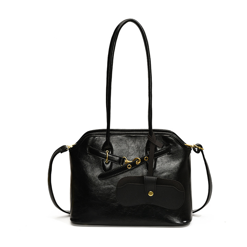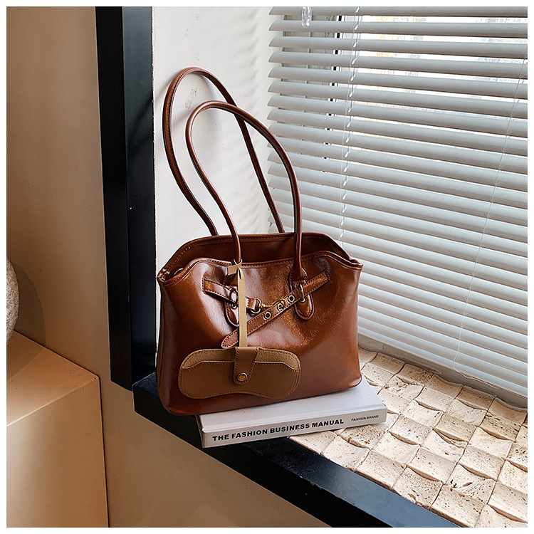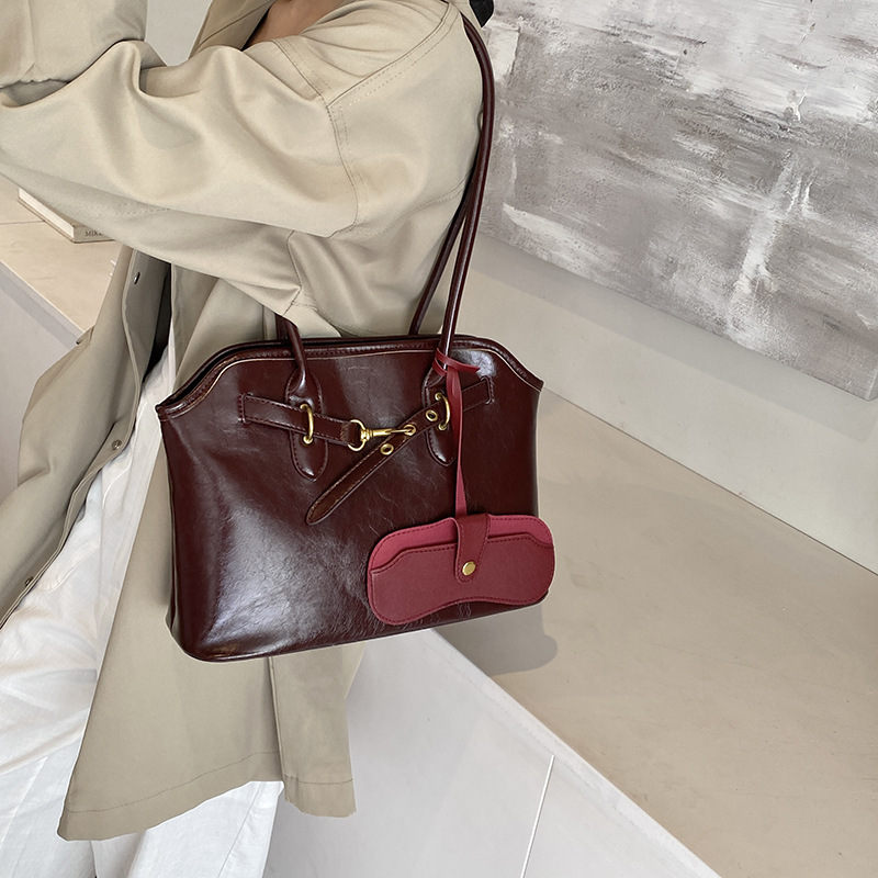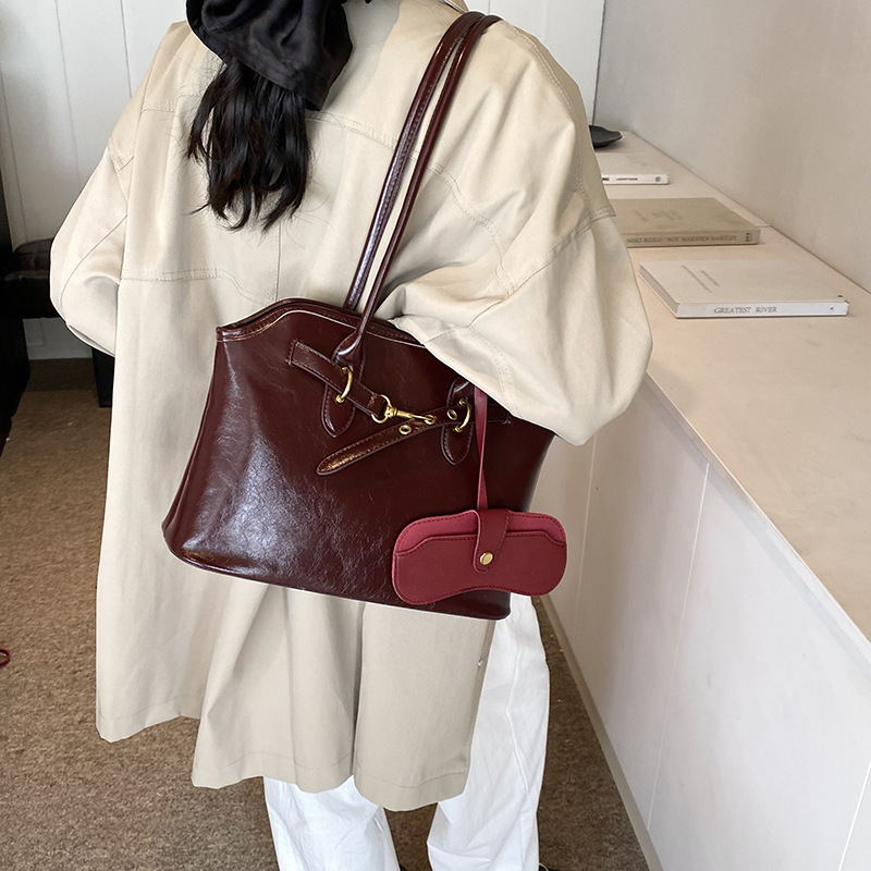 新款时尚纯色休闲简约通勤大容量单肩包托特包腋下包褶皱百搭