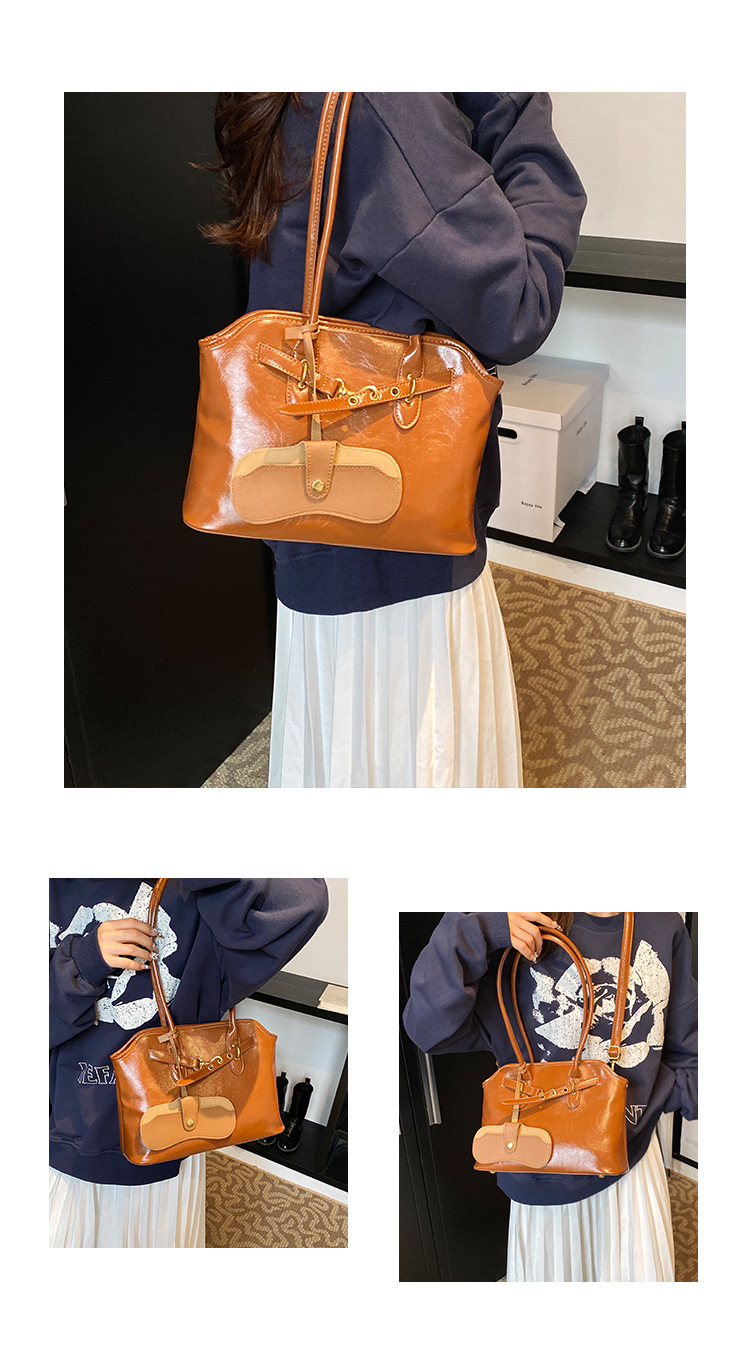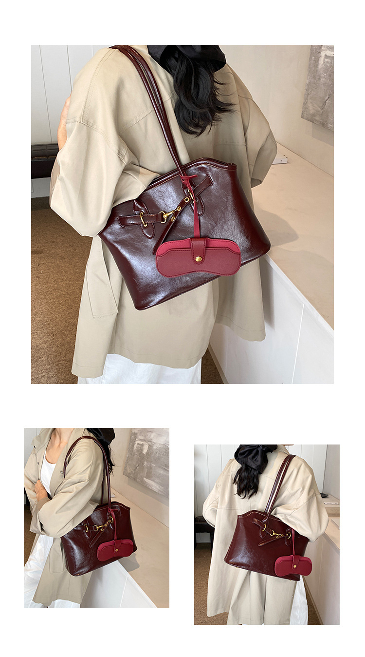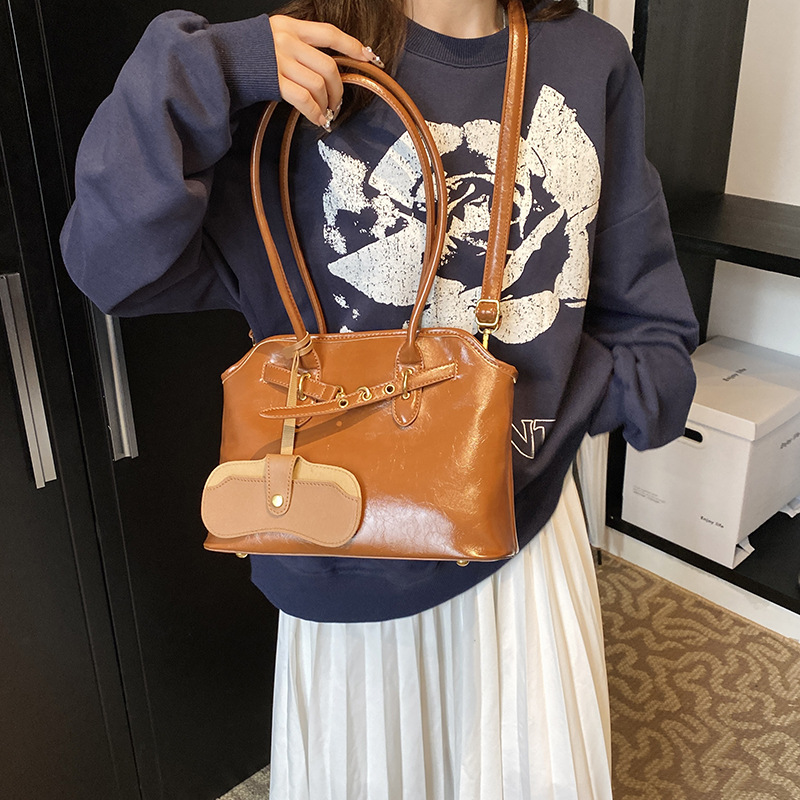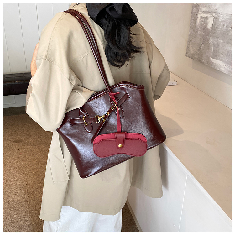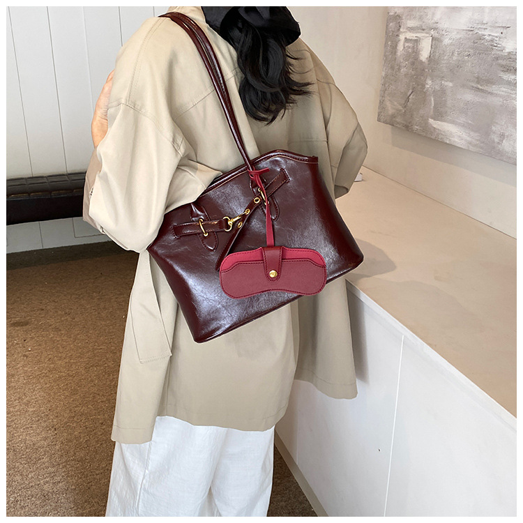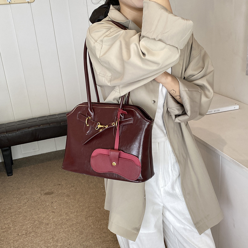 新款时尚纯色休闲简约通勤大容量单肩包托特包腋下包褶皱百搭