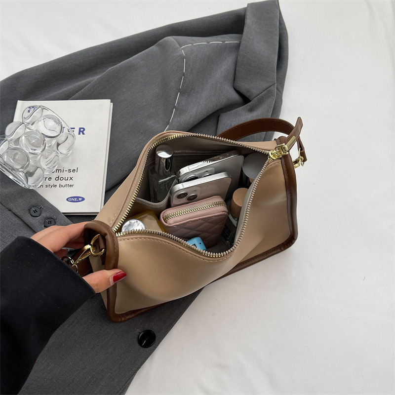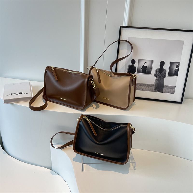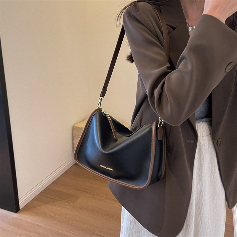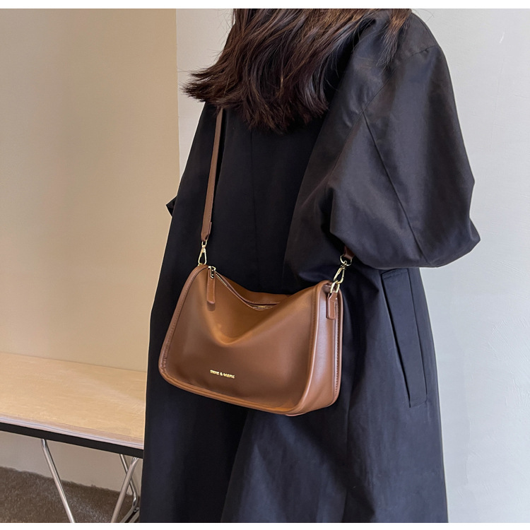 单肩包韩版PU质感纯色休闲百搭斜挎包小众设计通勤简约包包女