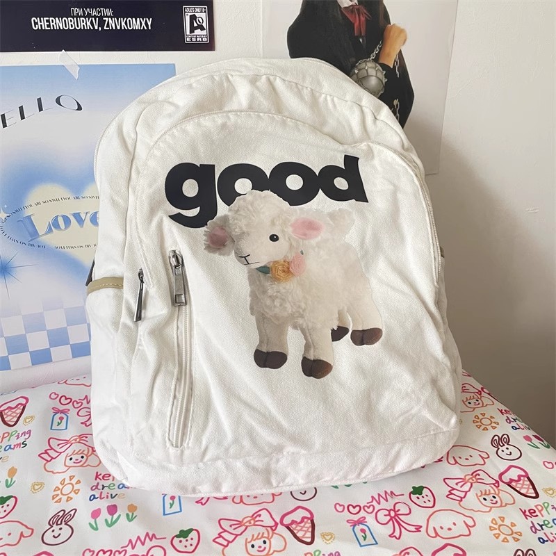 新款千禧童趣小绵羊印花书包日系动漫学院风可爱少女帆布双肩包