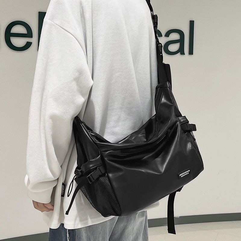 潮牌斜挎包男日系简约PU男包单肩包ins时尚潮流男士挎包邮差包女
