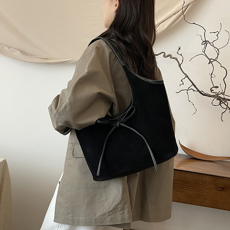 单肩包欧美复古磨砂绒面质感手提包大容量通勤简约百搭休闲托特包